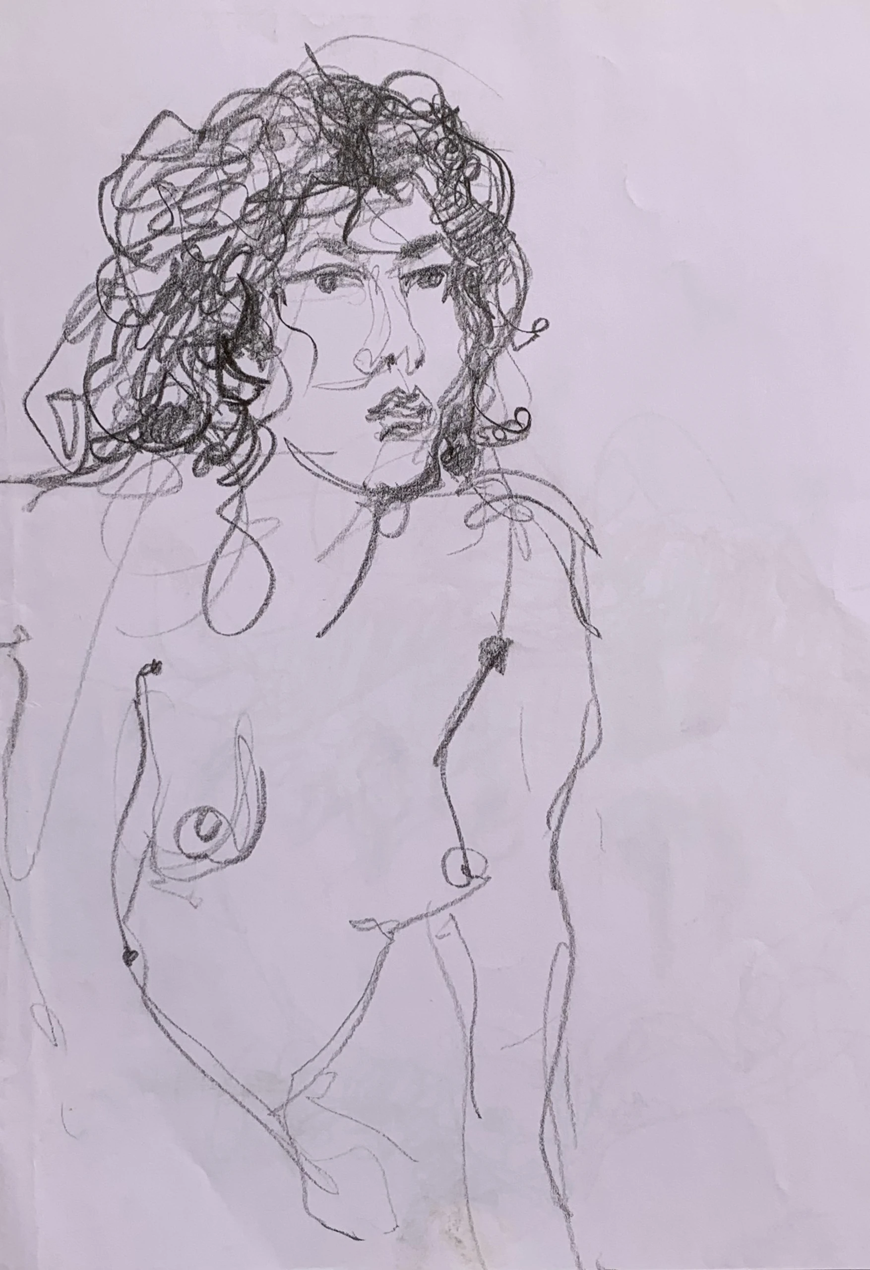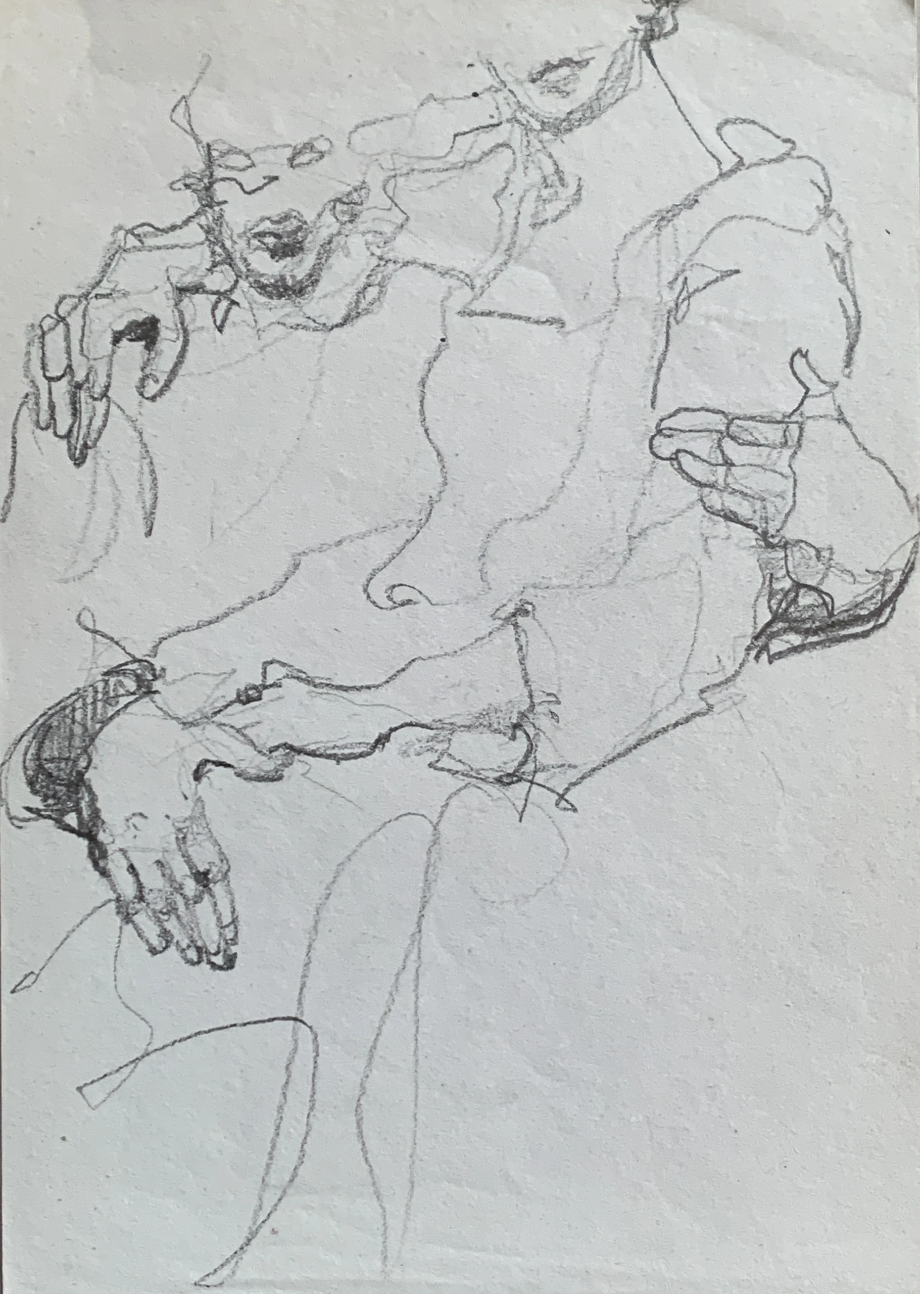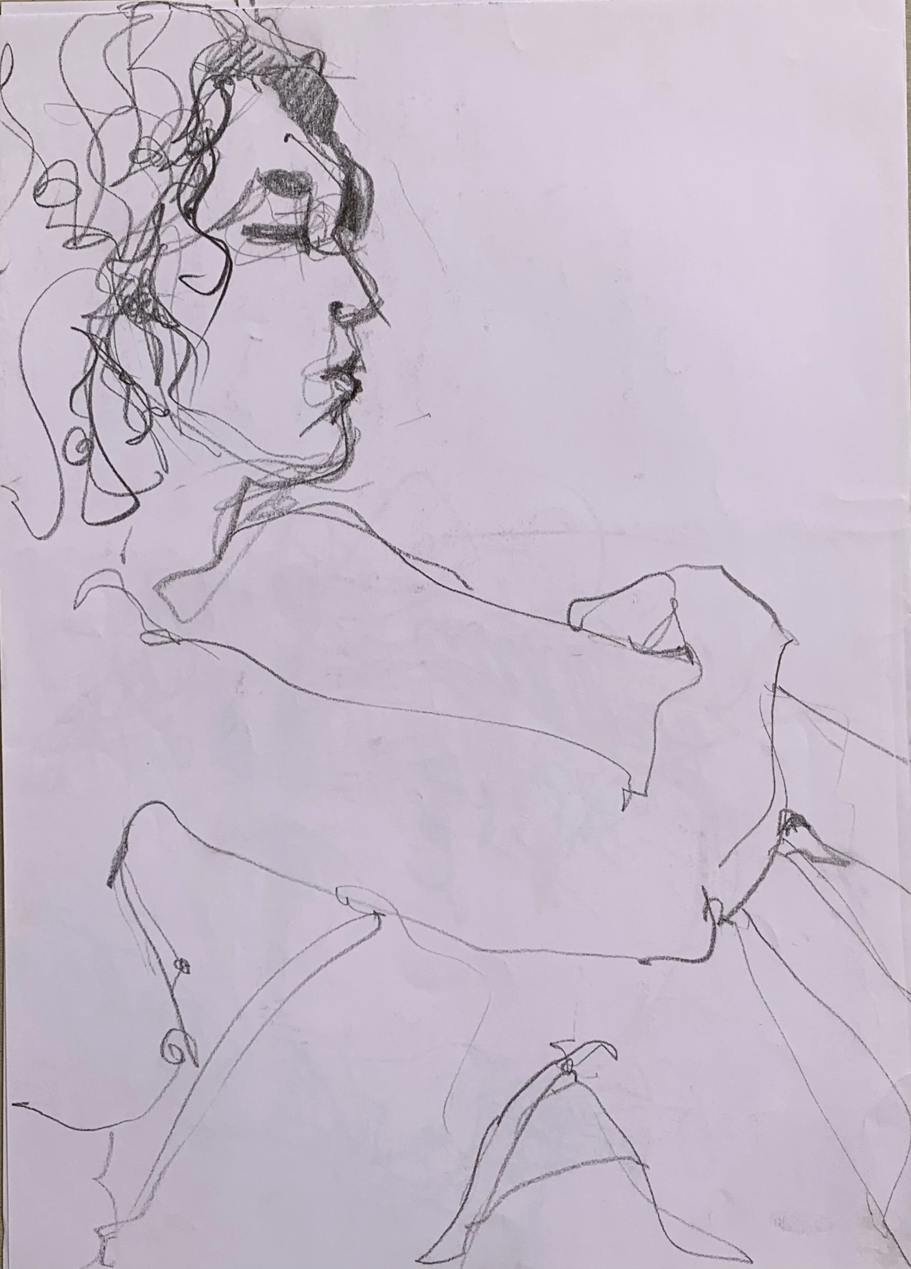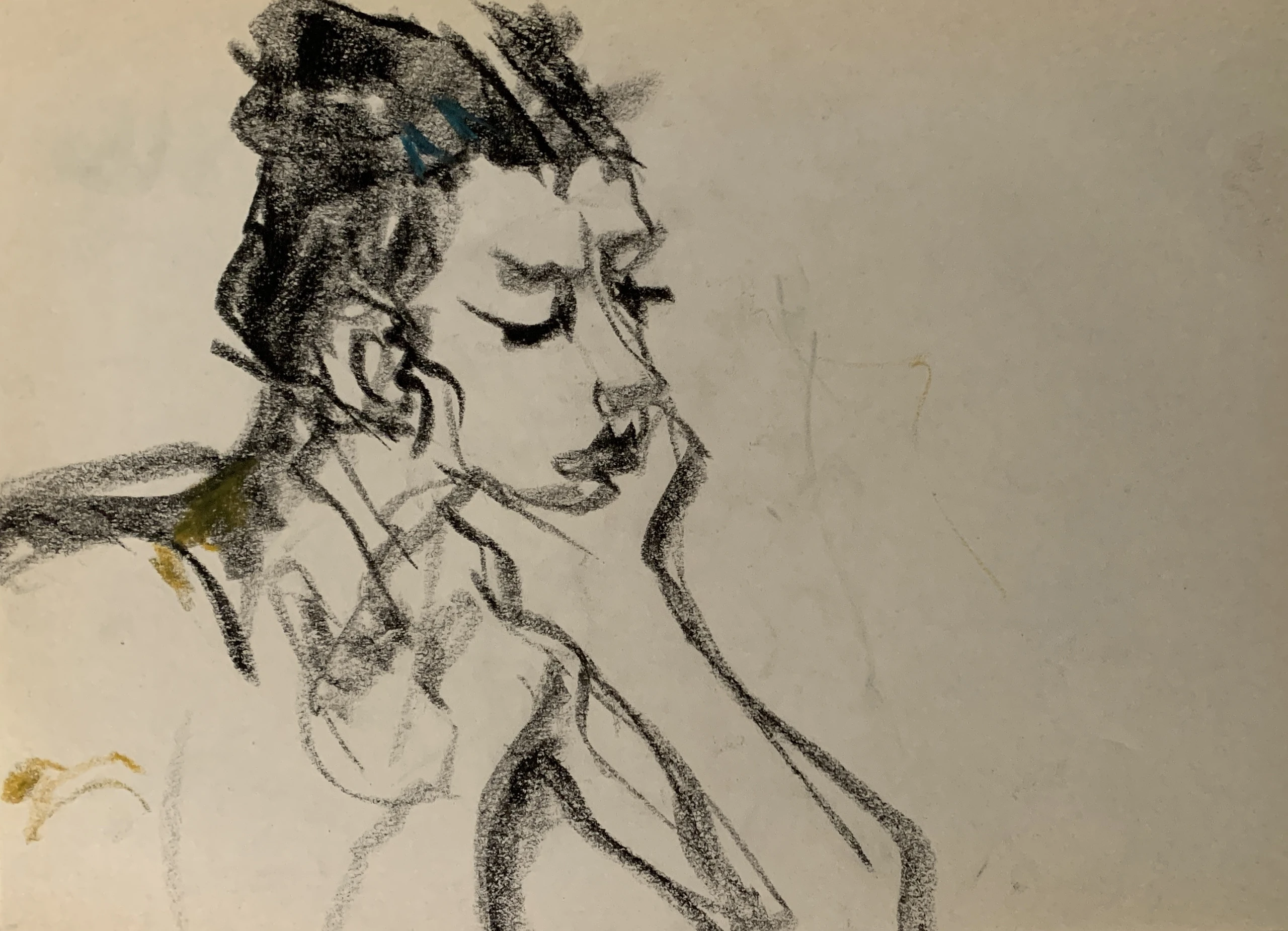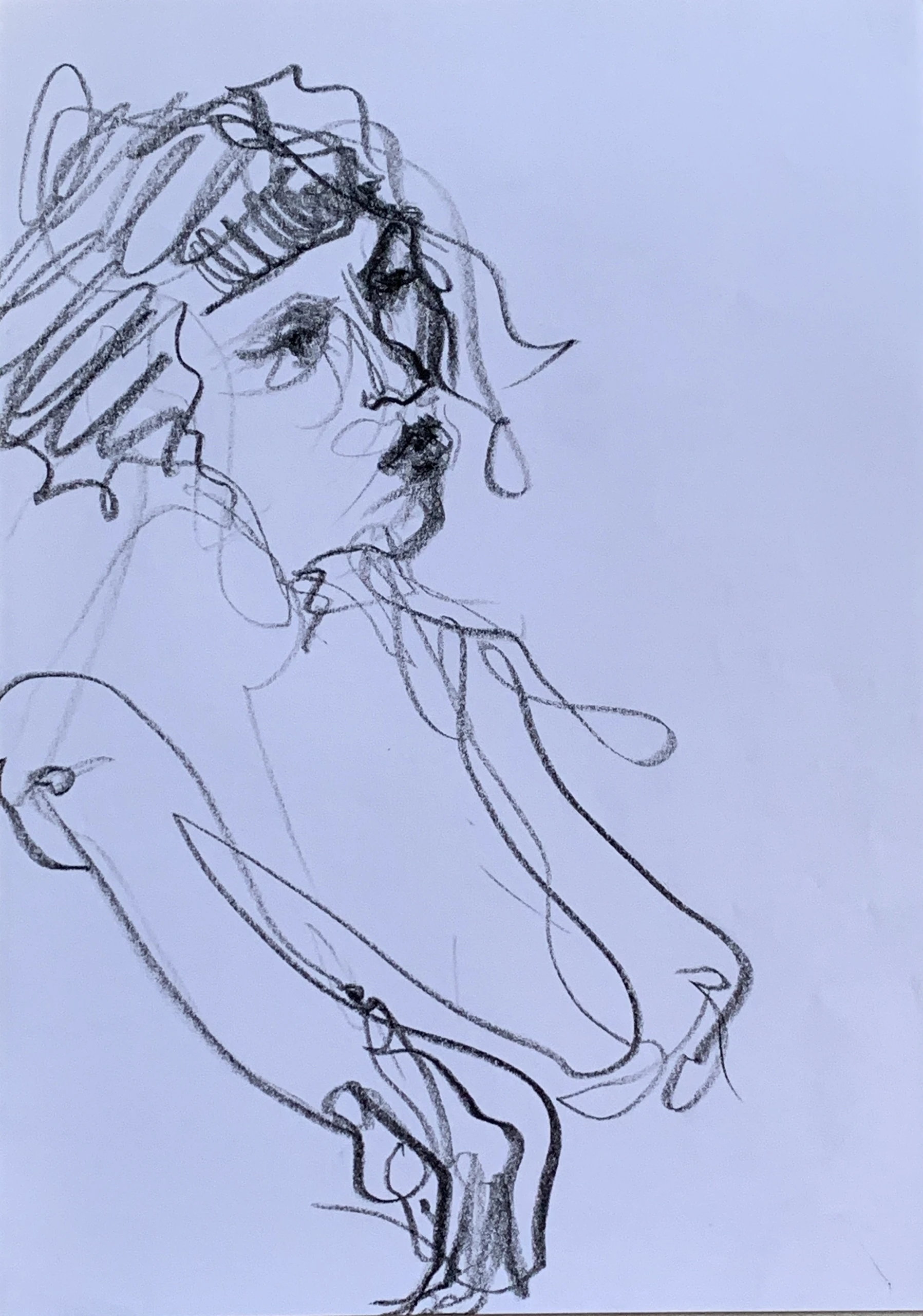 Στο γυμνό σχέδιο, ξεφεύγω πότε πότε και ζωγραφίζω το πρόσωπο και την έκφραση του μοντέλου που μας ποζάρει, πάντα μέσα στον σύντομο χρόνο που έχουμε στην διάθεσή μας.