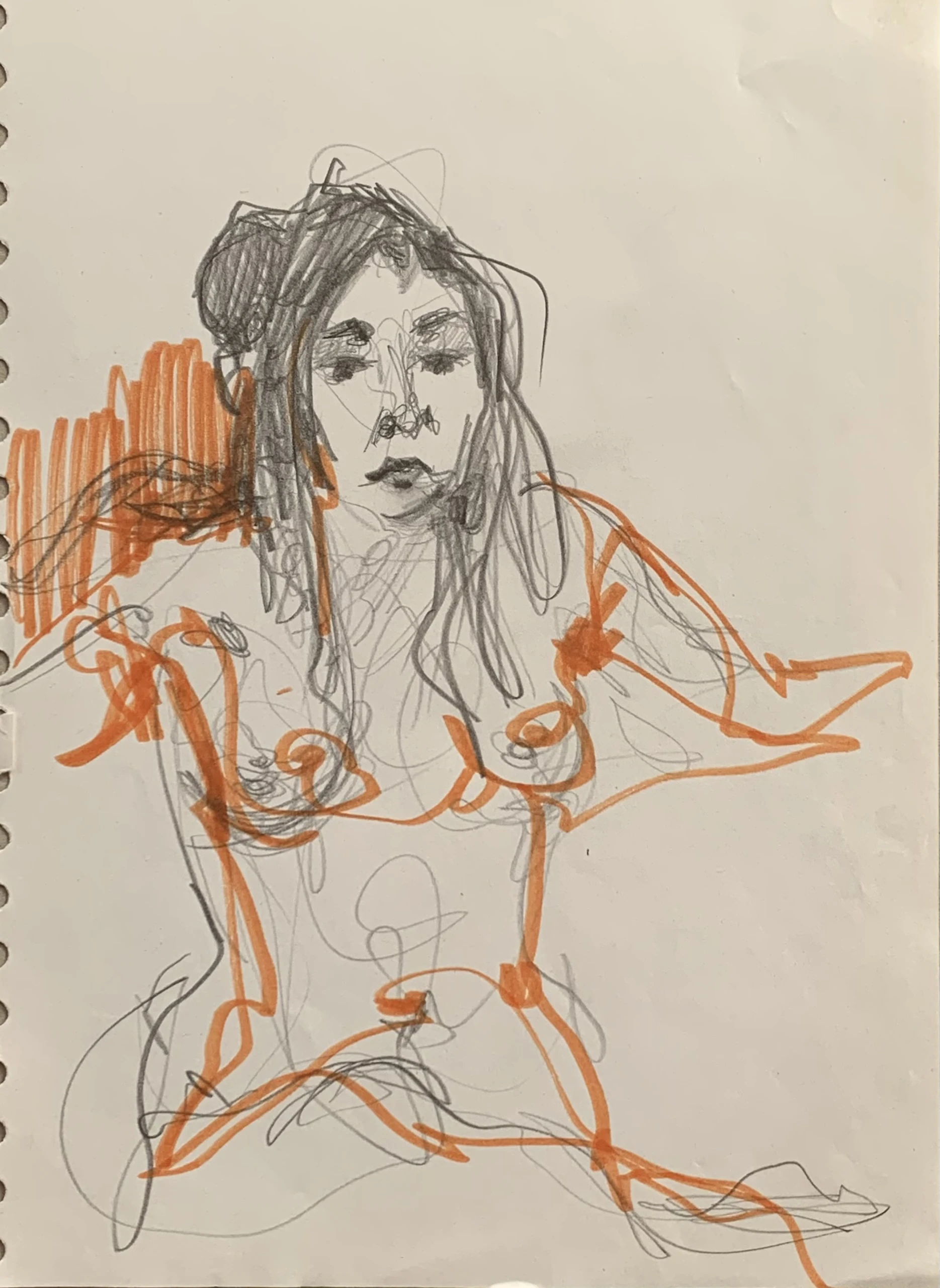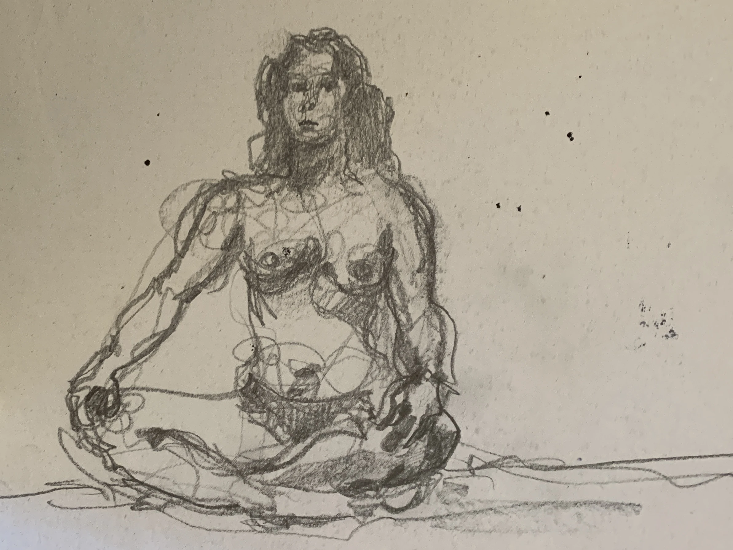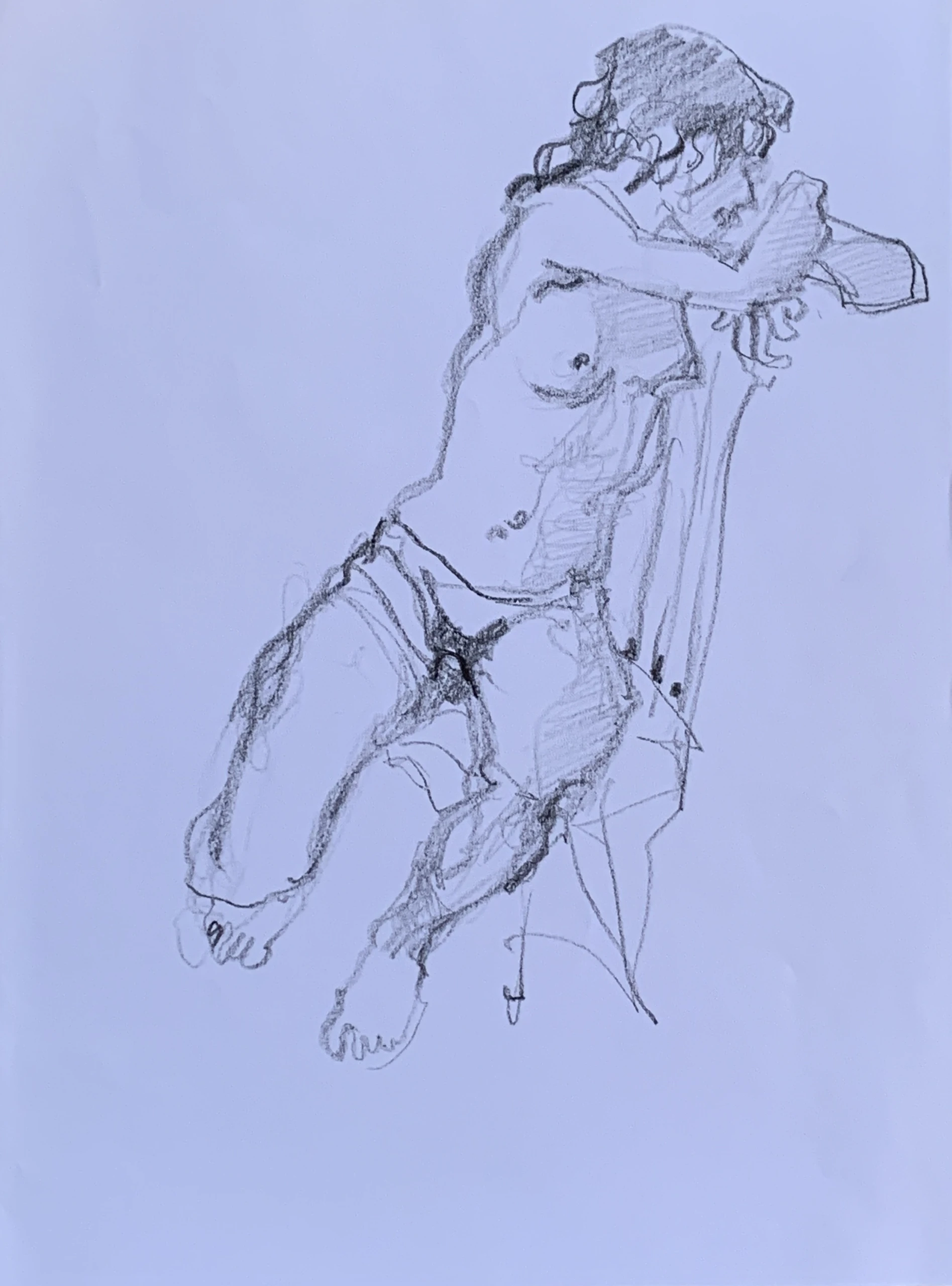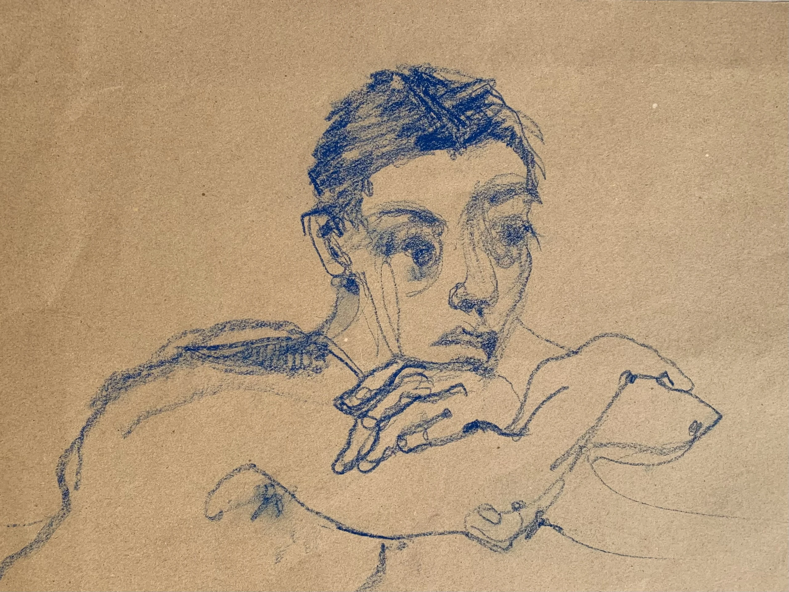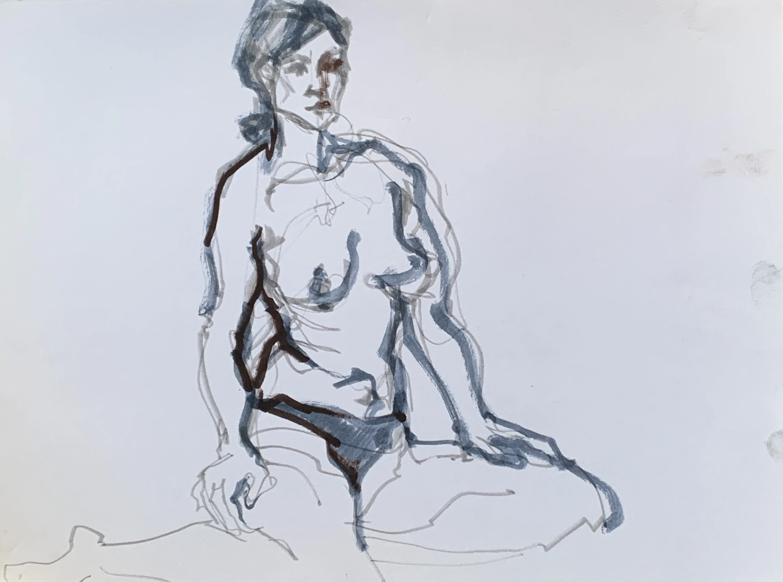 Στο γυμνό σχέδιο, ξεφεύγω πότε πότε και ζωγραφίζω το πρόσωπο και την έκφραση του μοντέλου που μας ποζάρει, πάντα μέσα στον σύντομο χρόνο που έχουμε στην διάθεσή μας.