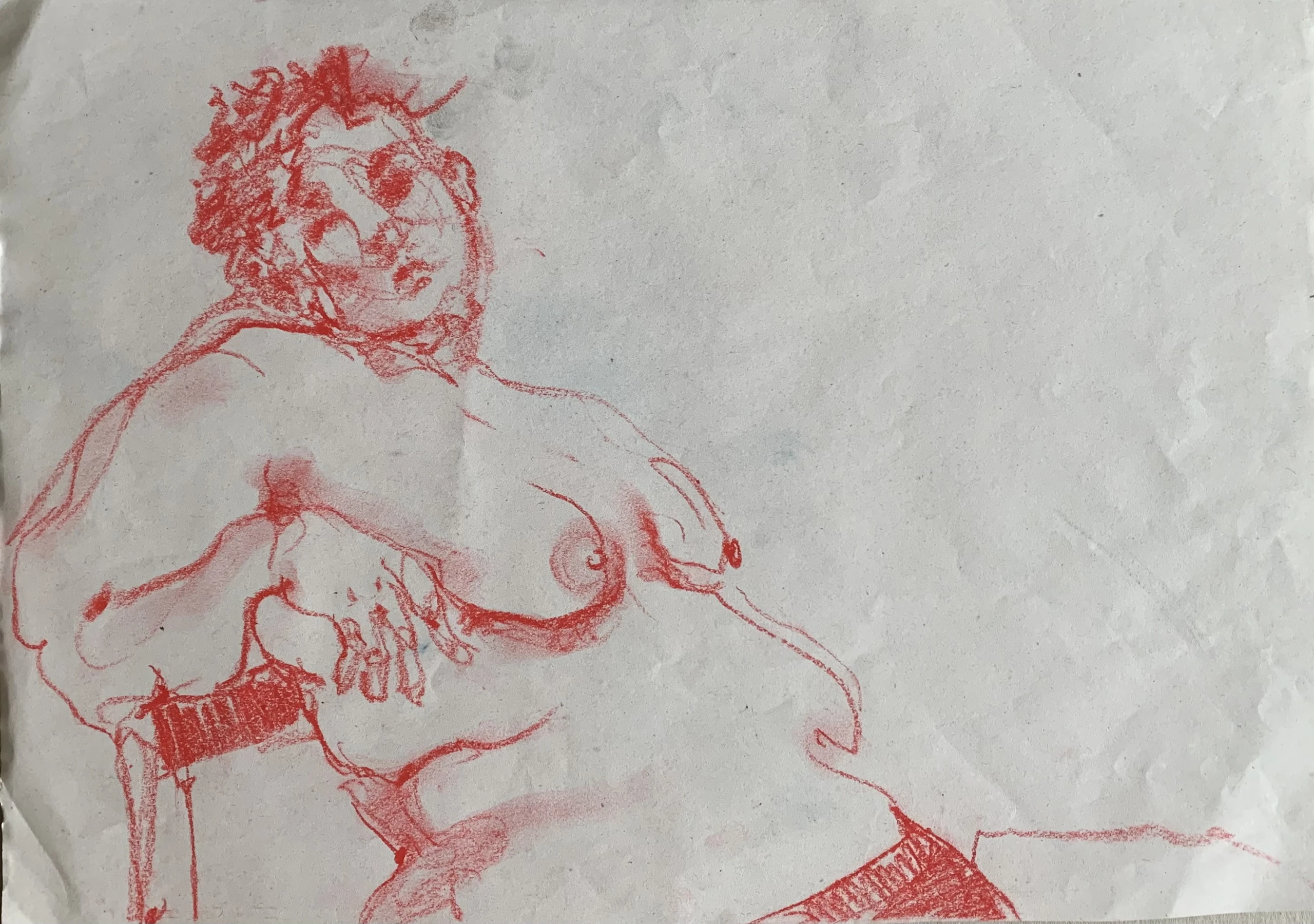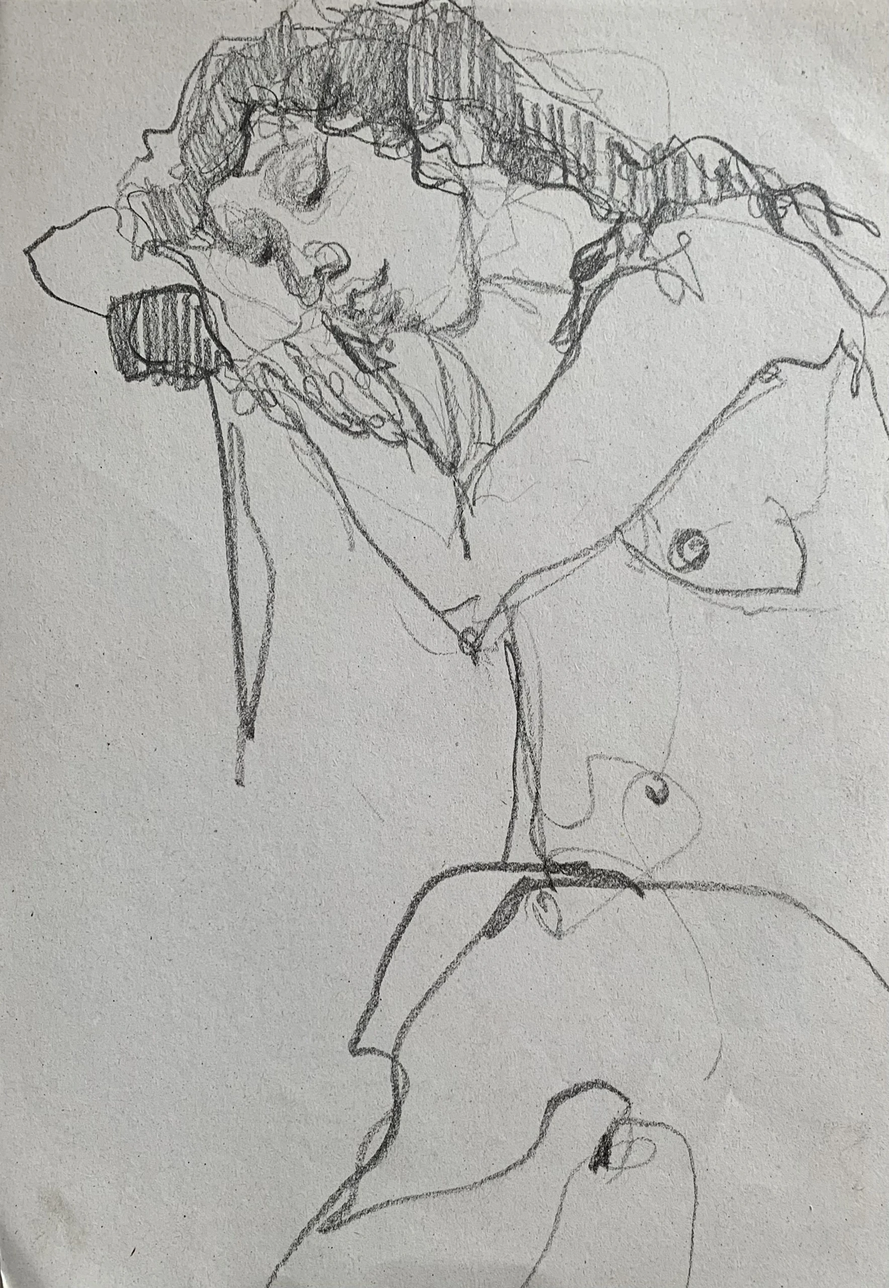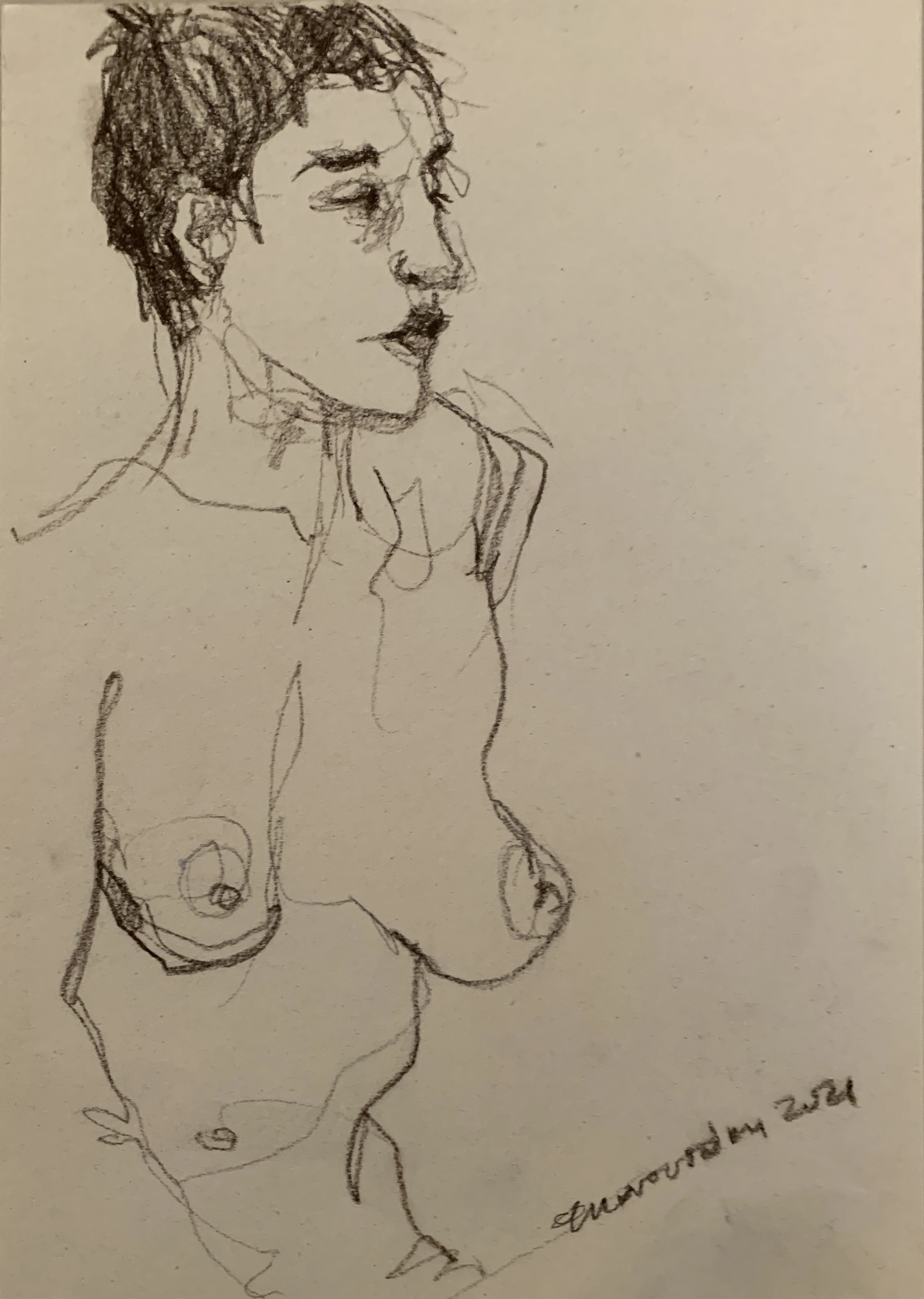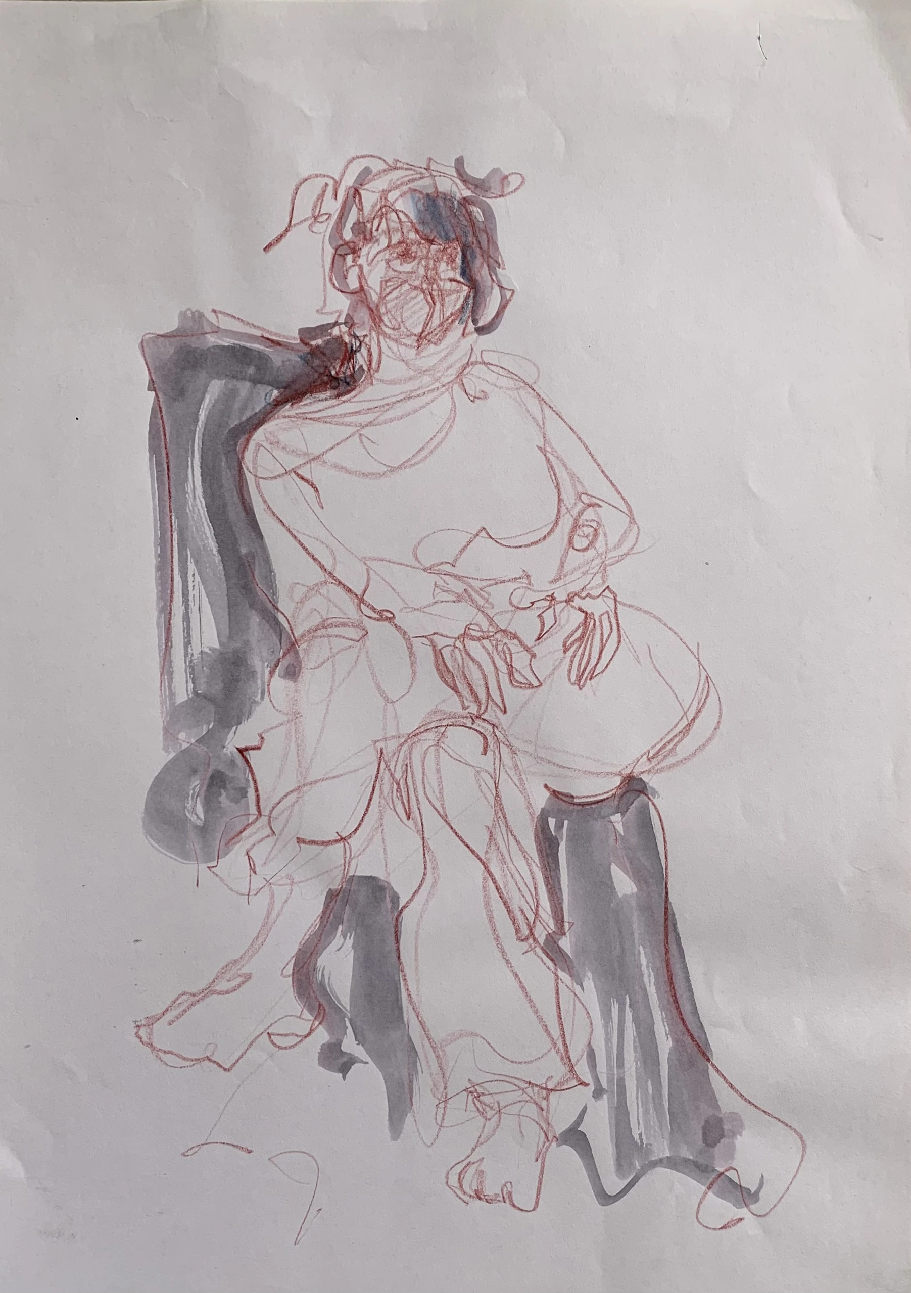 Στο γυμνό σχέδιο, ξεφεύγω πότε πότε και ζωγραφίζω το πρόσωπο και την έκφραση του μοντέλου που μας ποζάρει, πάντα μέσα στον σύντομο χρόνο που έχουμε στην διάθεσή μας.