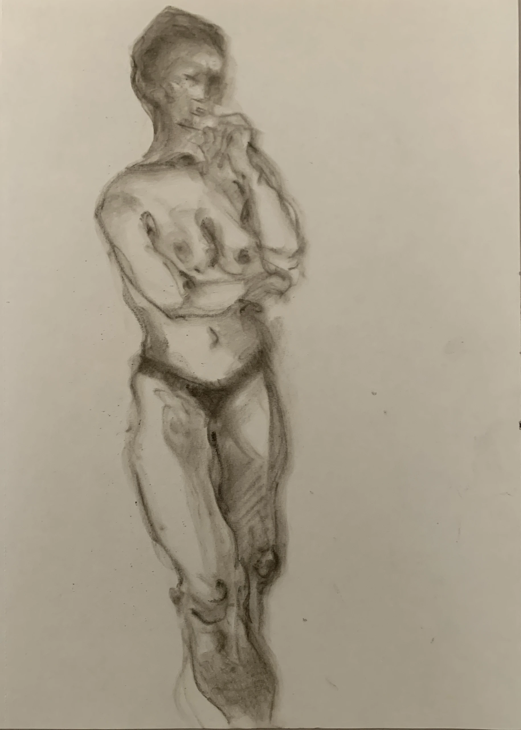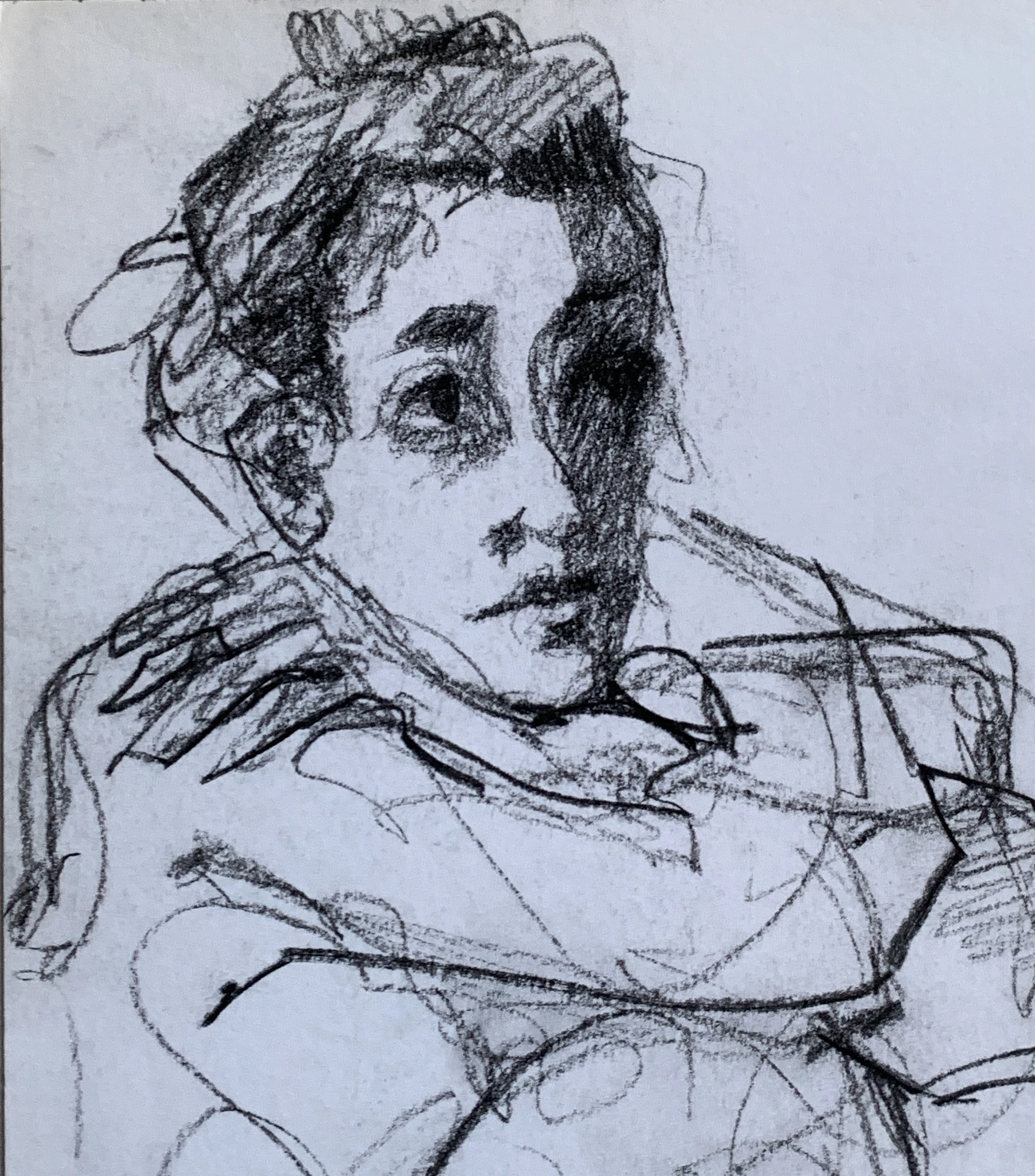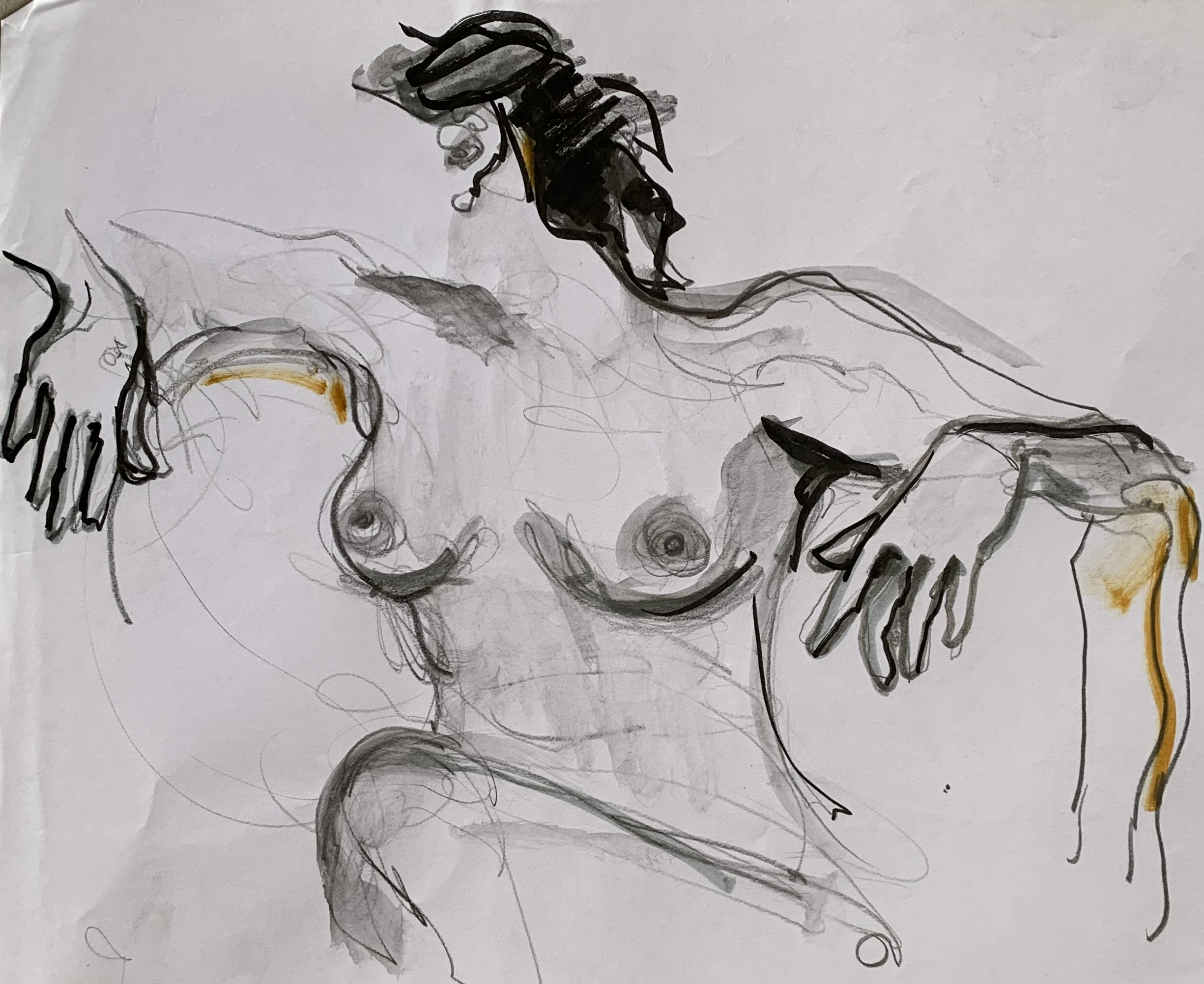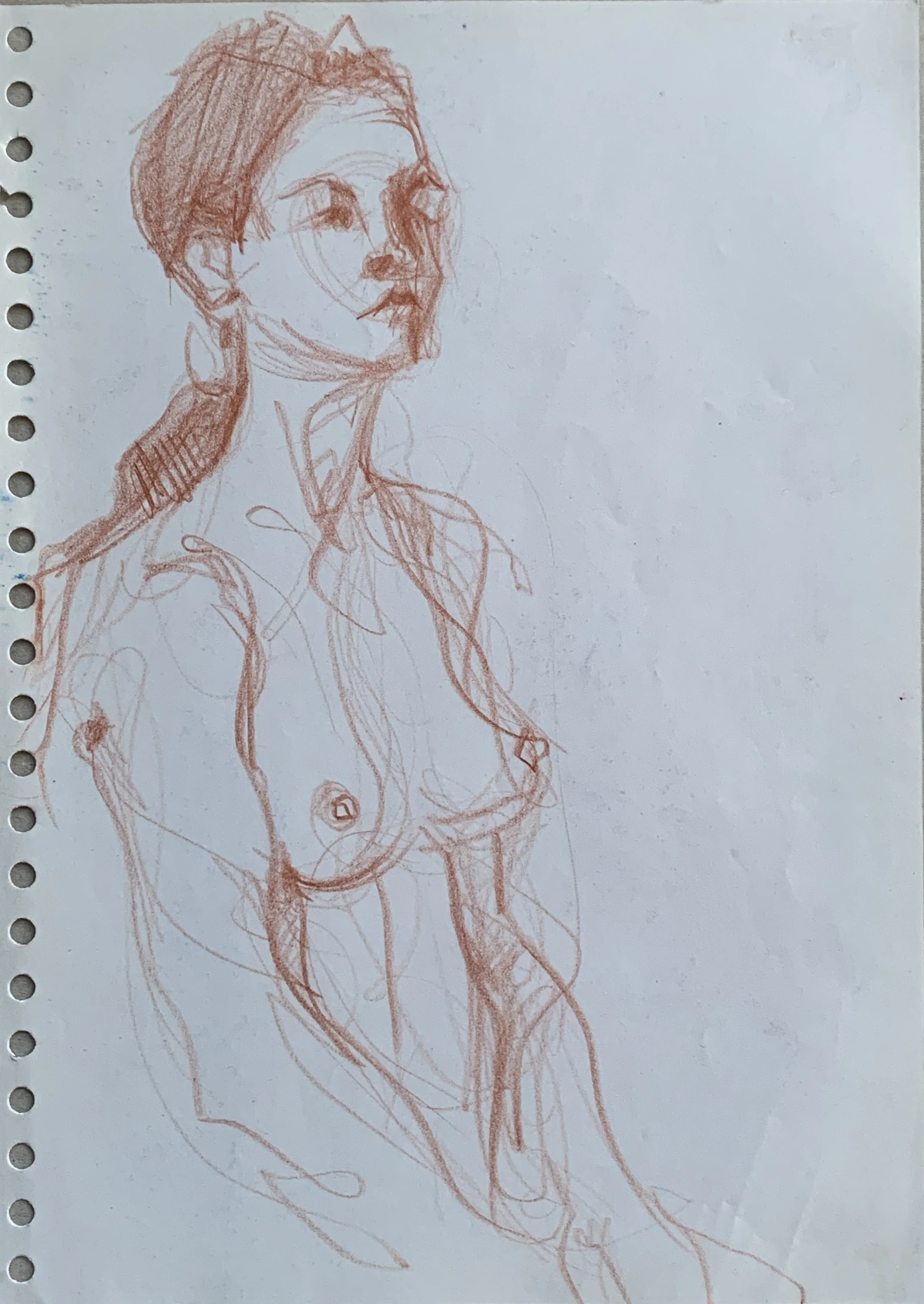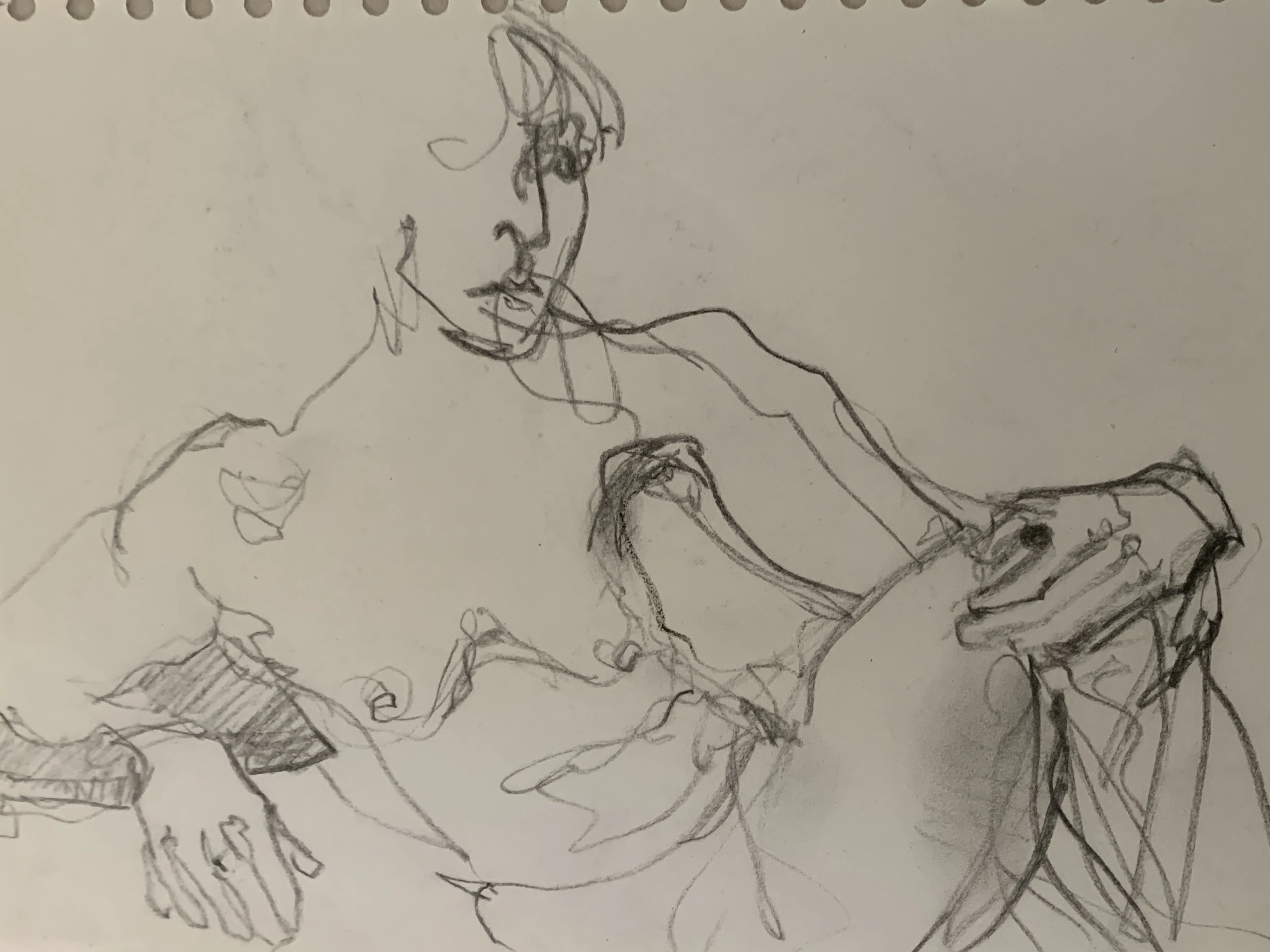 Στο γυμνό σχέδιο, ξεφεύγω πότε πότε και ζωγραφίζω το πρόσωπο και την έκφραση του μοντέλου που μας ποζάρει, πάντα μέσα στον σύντομο χρόνο που έχουμε στην διάθεσή μας.