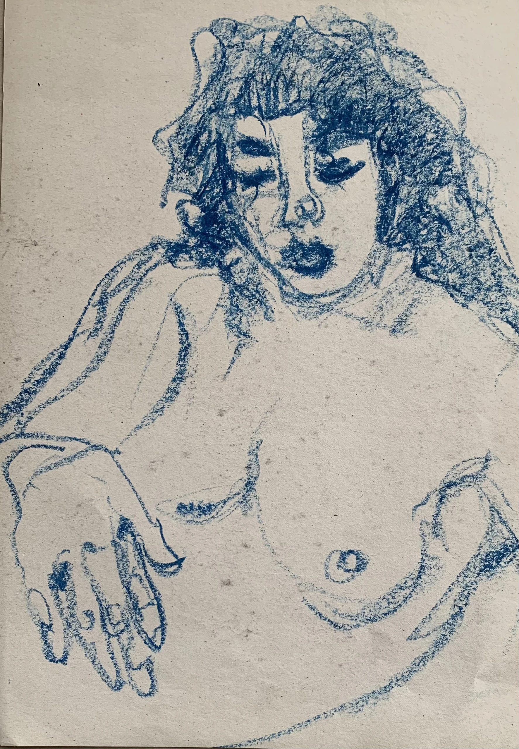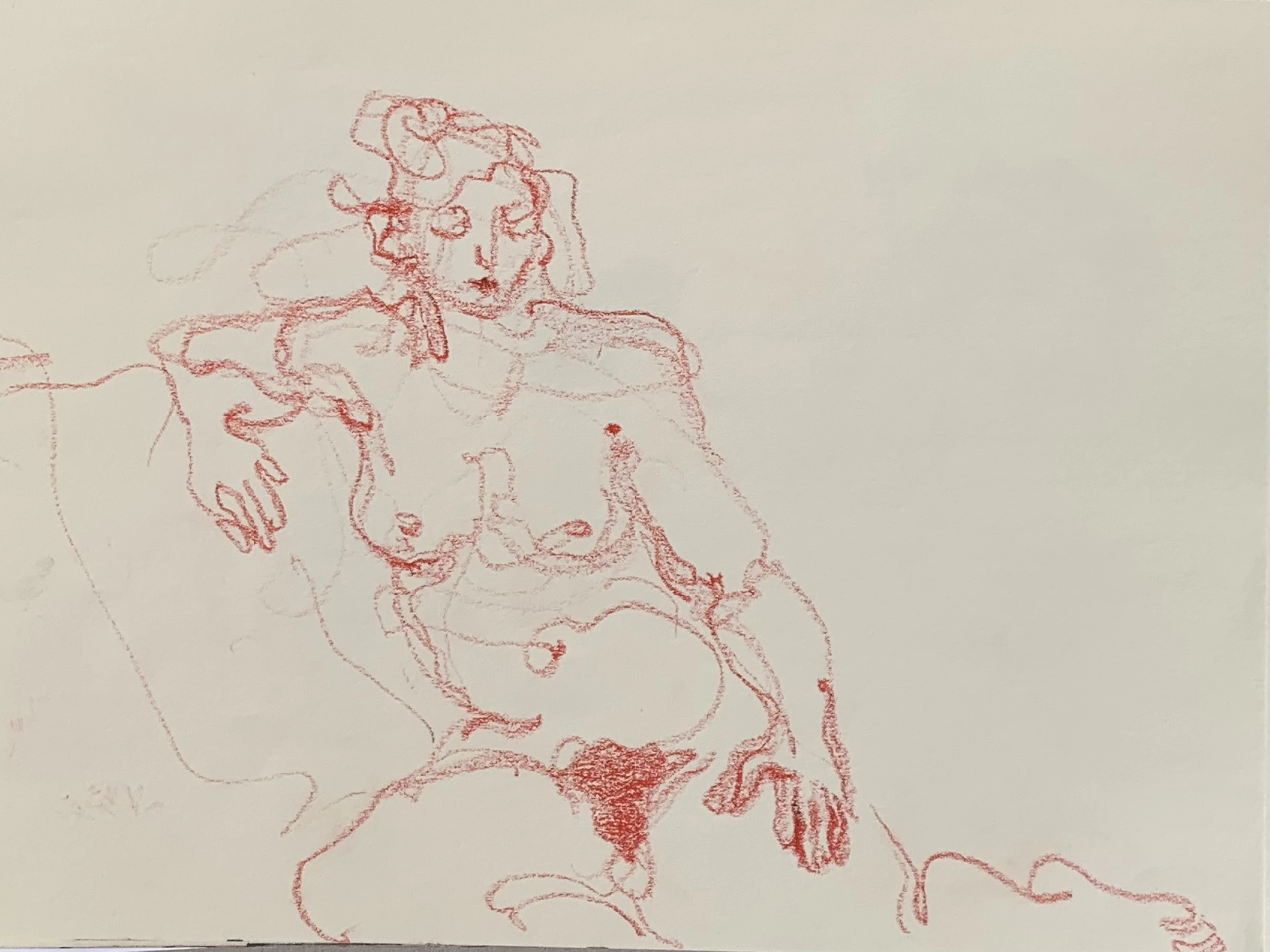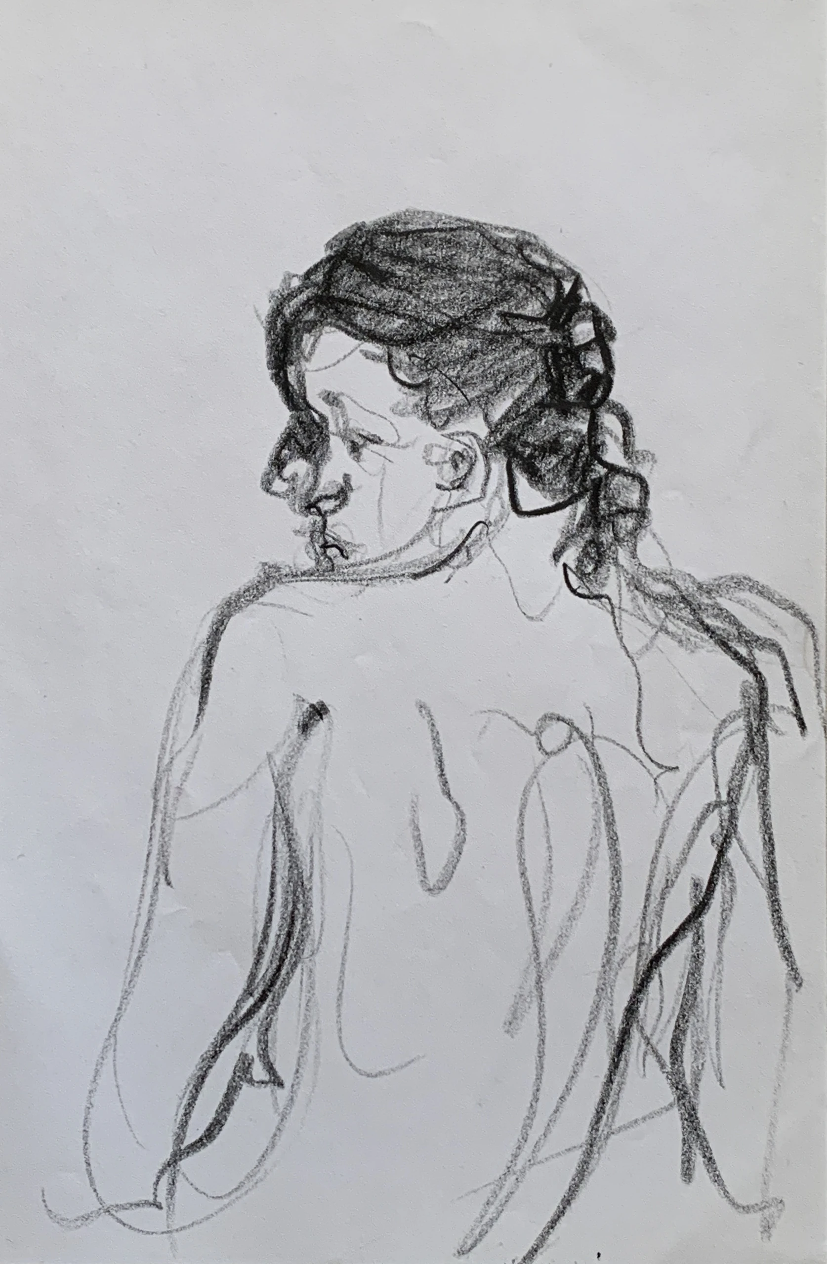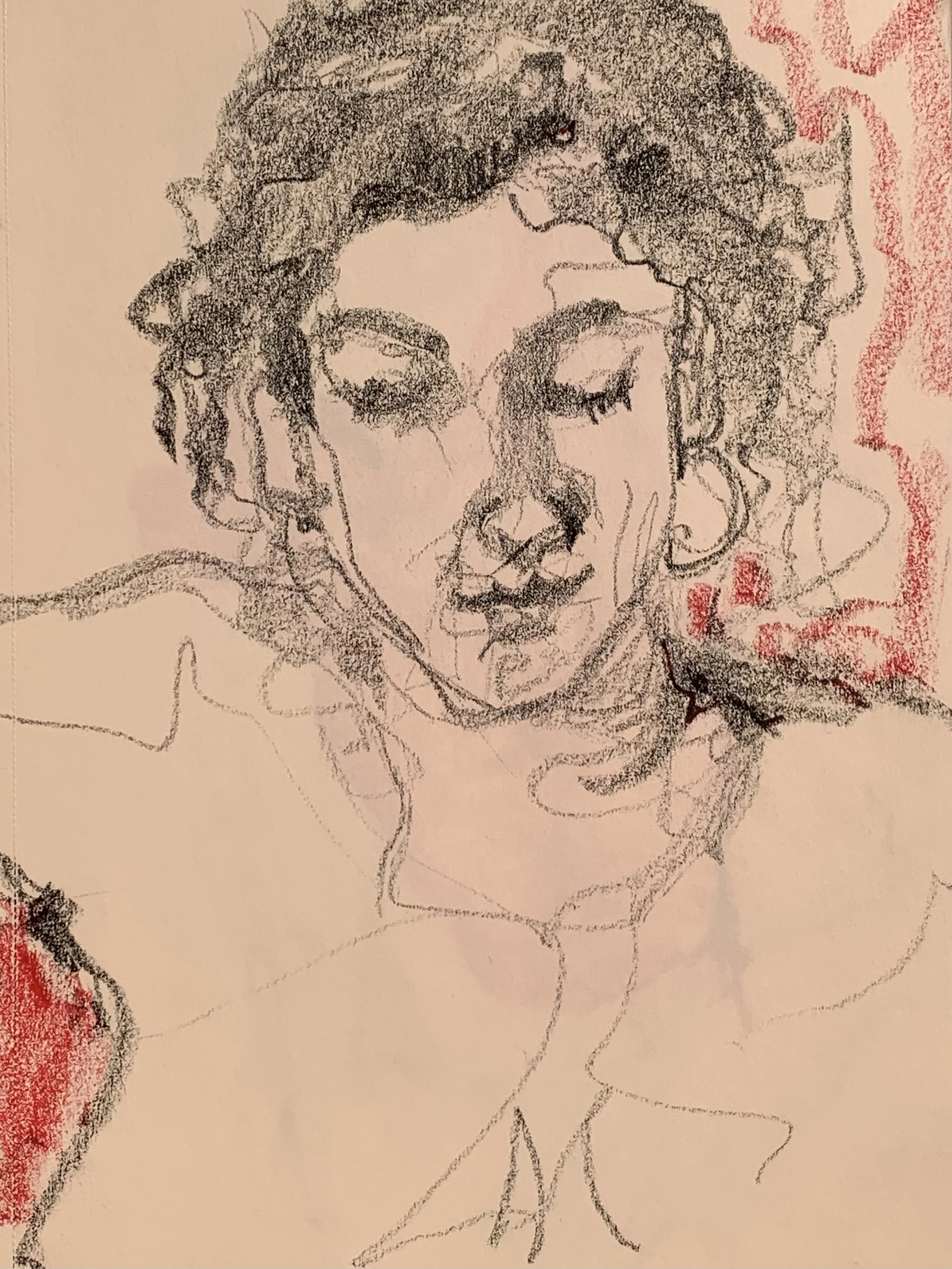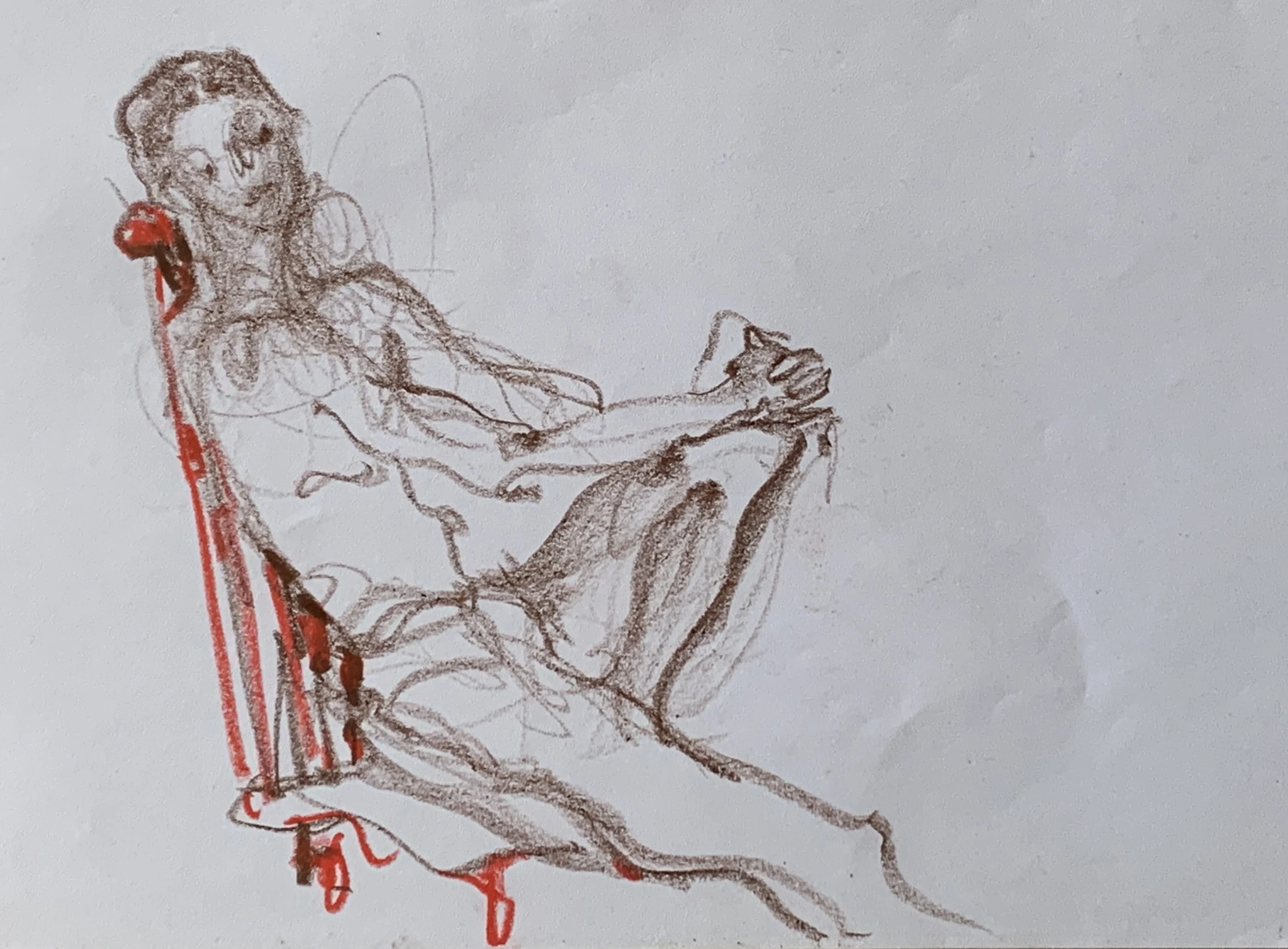 Στο γυμνό σχέδιο, ξεφεύγω πότε πότε και ζωγραφίζω το πρόσωπο και την έκφραση του μοντέλου που μας ποζάρει, πάντα μέσα στον σύντομο χρόνο που έχουμε στην διάθεσή μας.