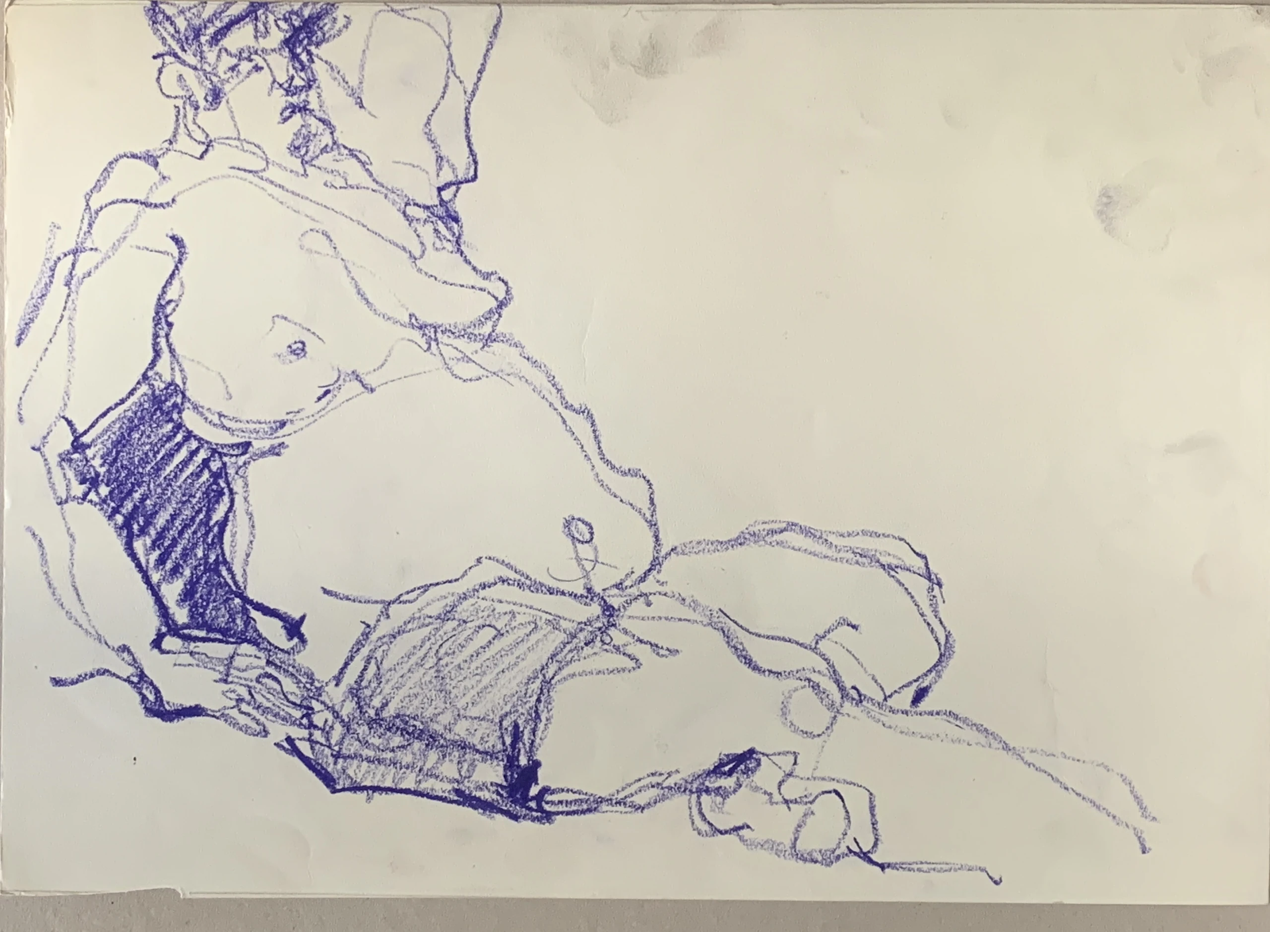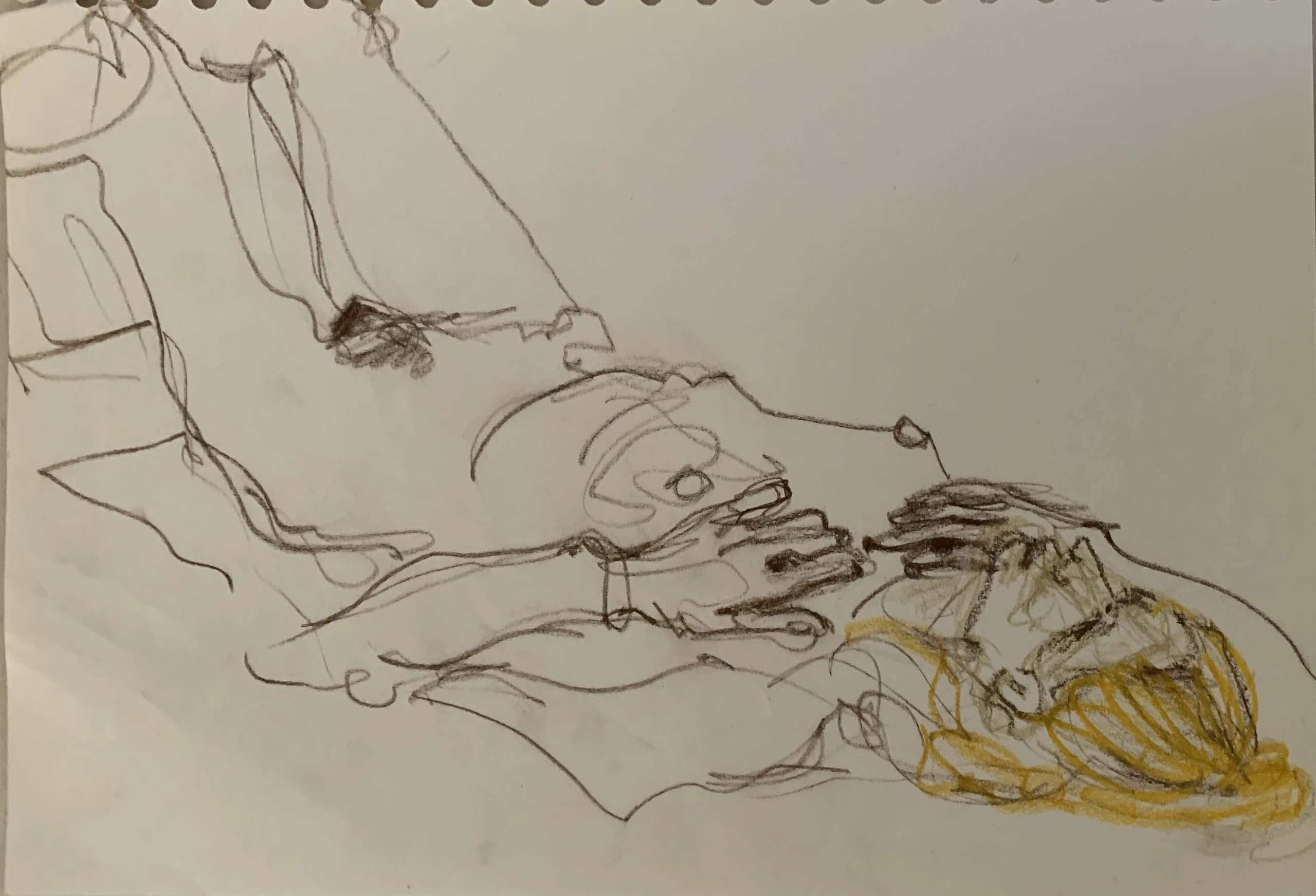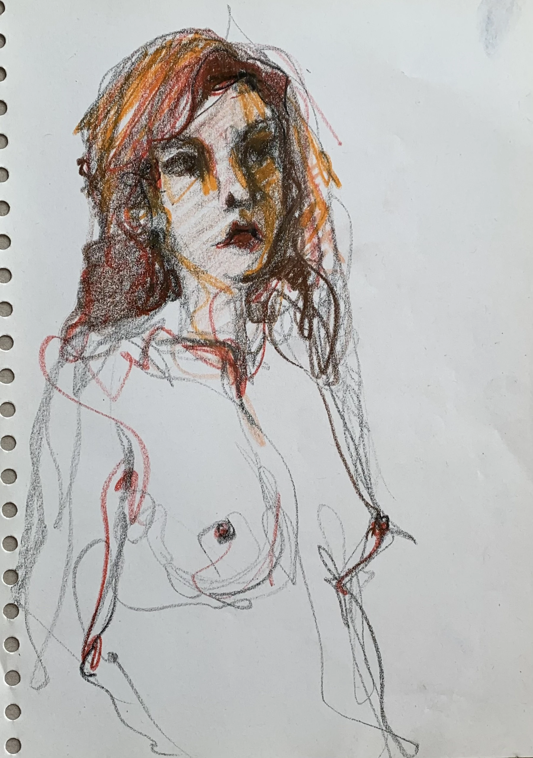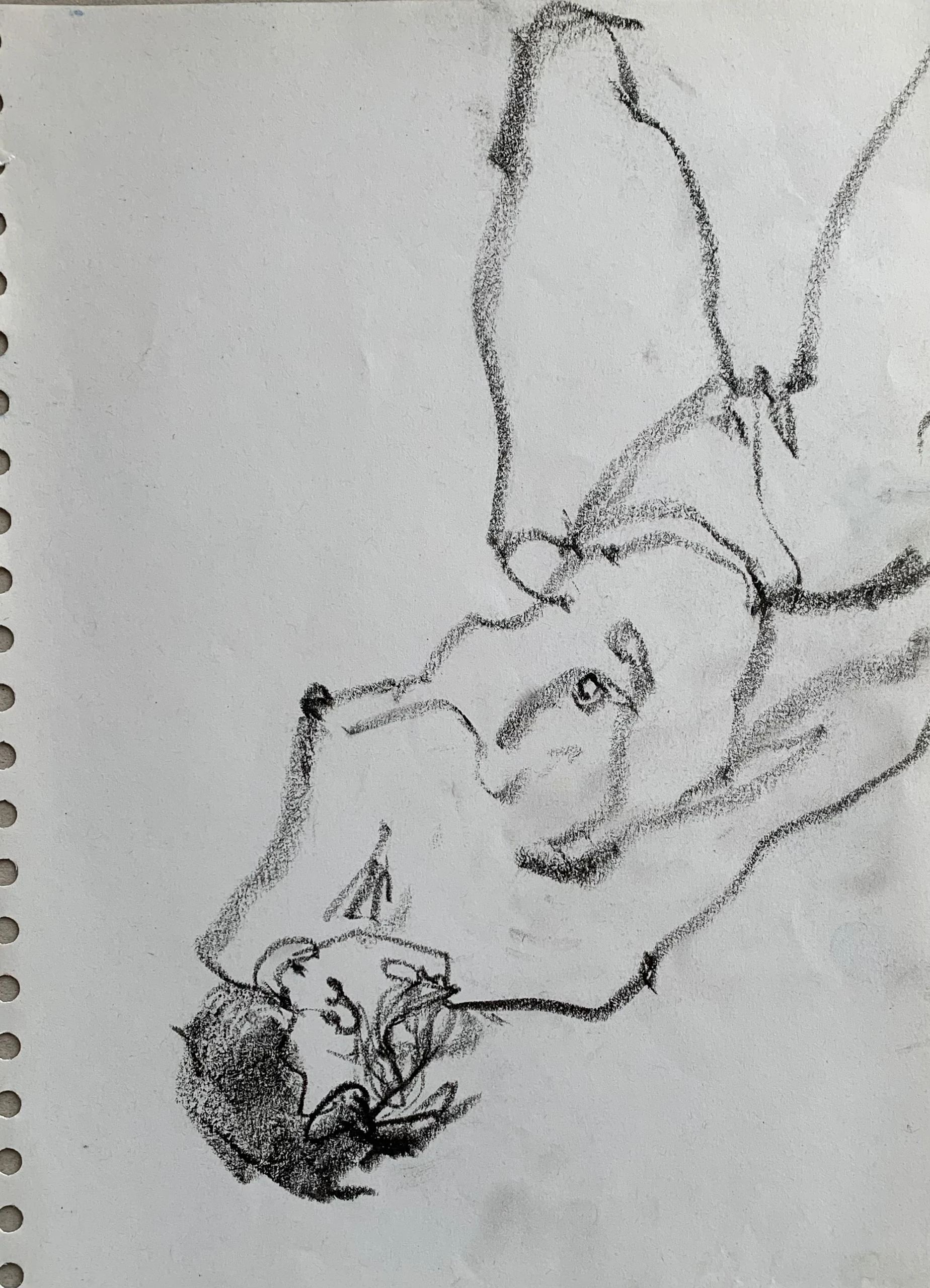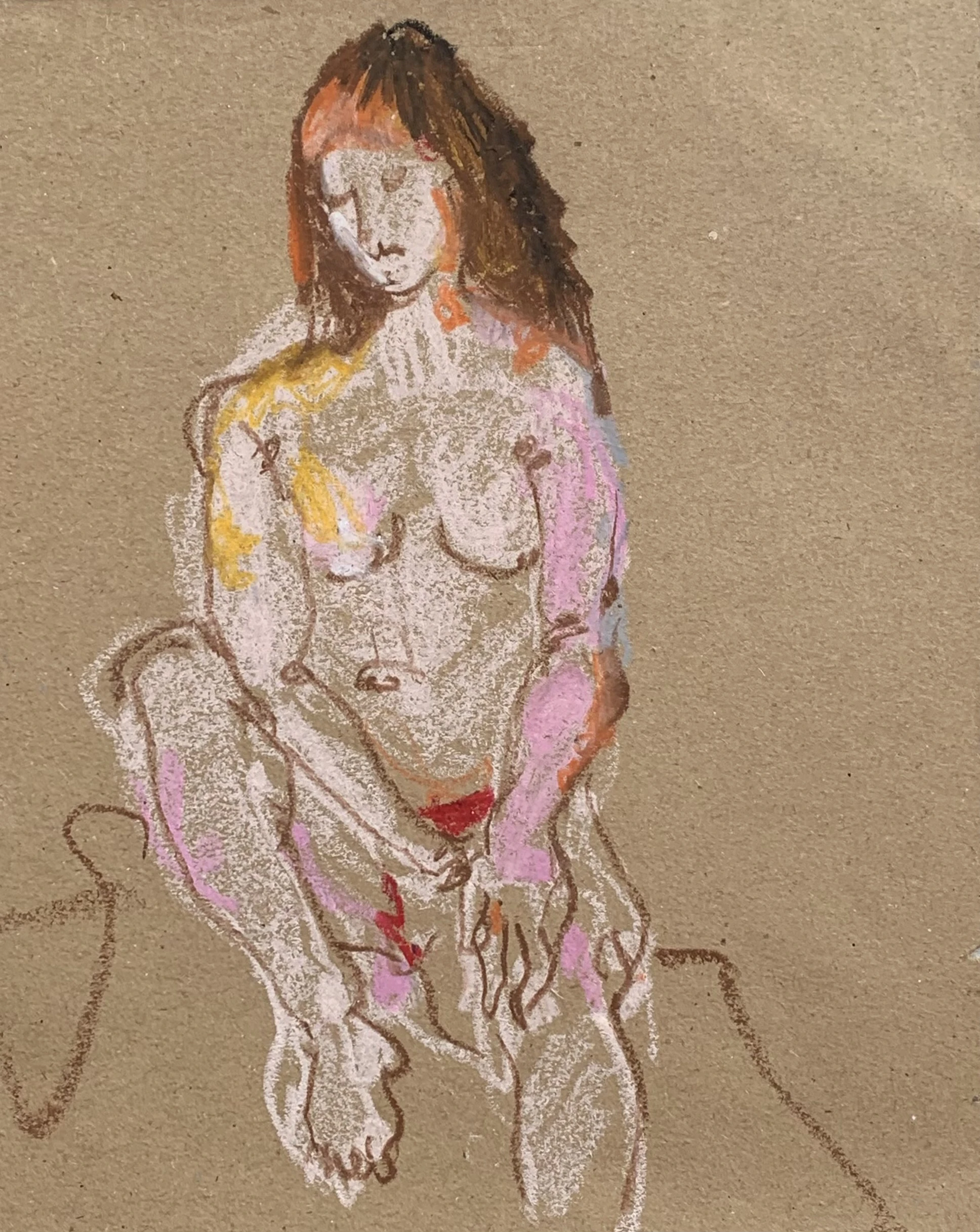 Στο γυμνό σχέδιο, ξεφεύγω πότε πότε και ζωγραφίζω το πρόσωπο και την έκφραση του μοντέλου που μας ποζάρει, πάντα μέσα στον σύντομο χρόνο που έχουμε στην διάθεσή μας.