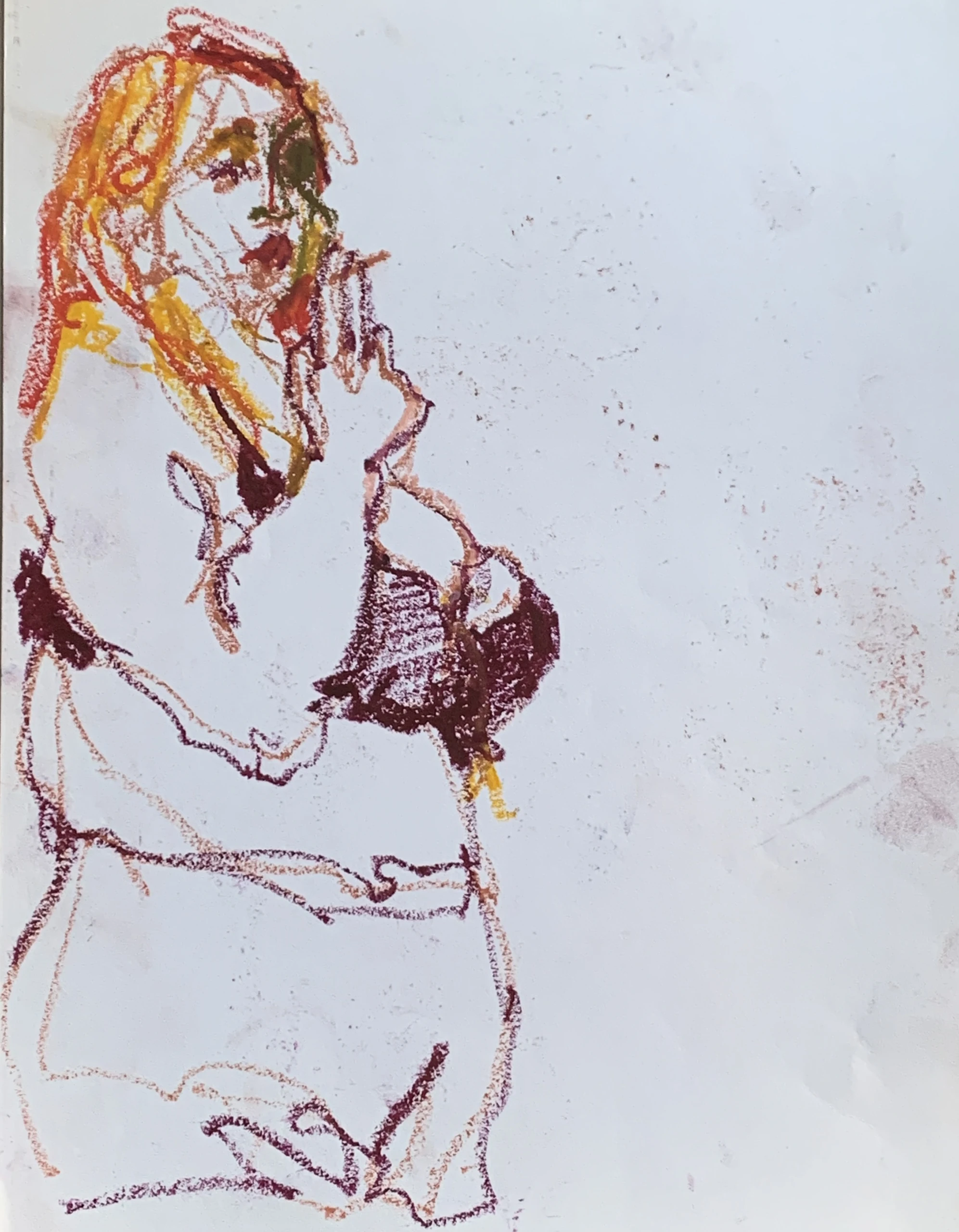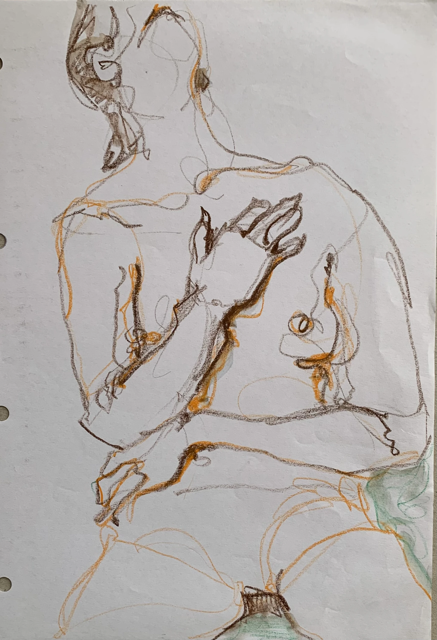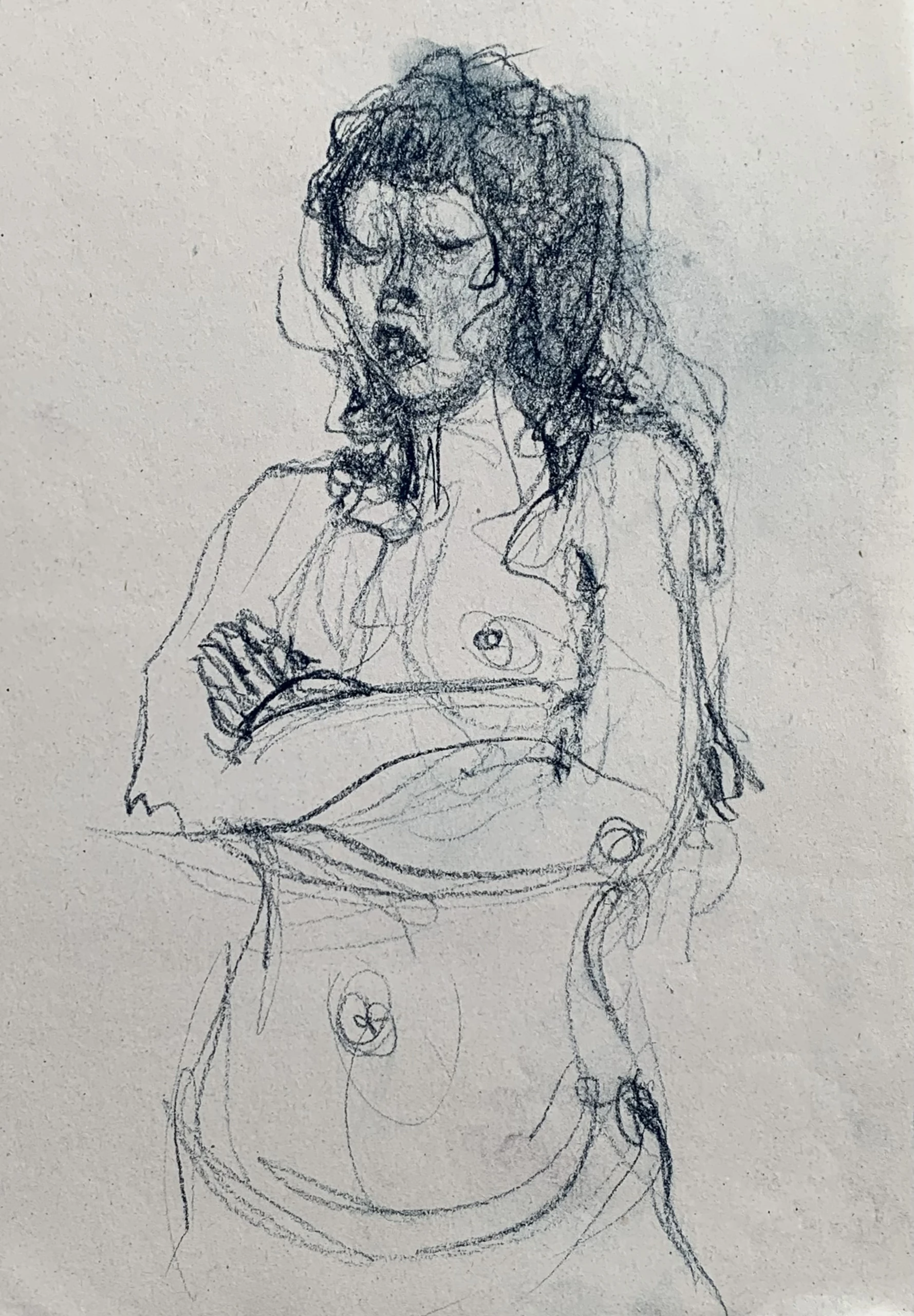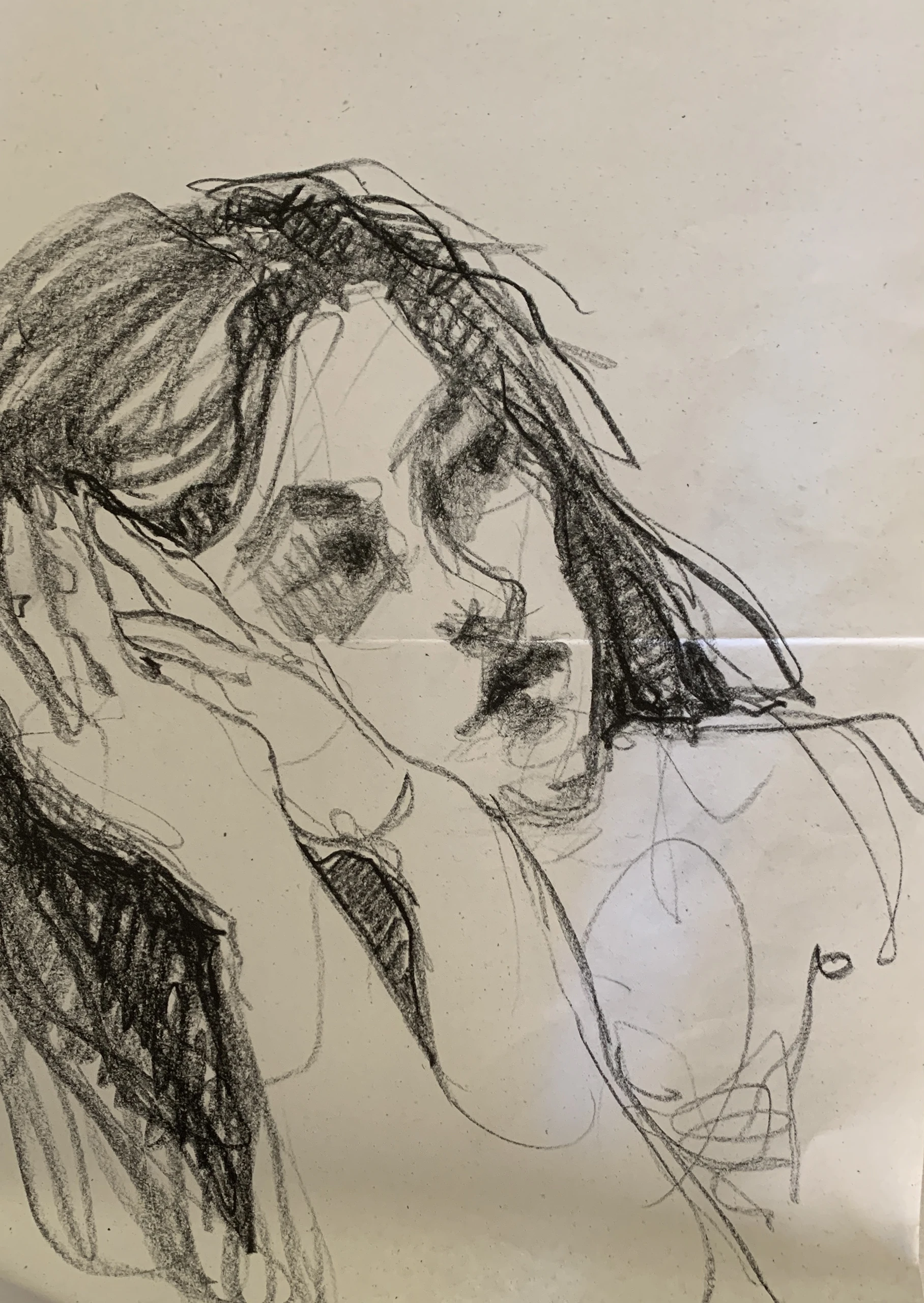 Στο γυμνό σχέδιο, ξεφεύγω πότε πότε και ζωγραφίζω το πρόσωπο και την έκφραση του μοντέλου που μας ποζάρει, πάντα μέσα στον σύντομο χρόνο που έχουμε στην διάθεσή μας.