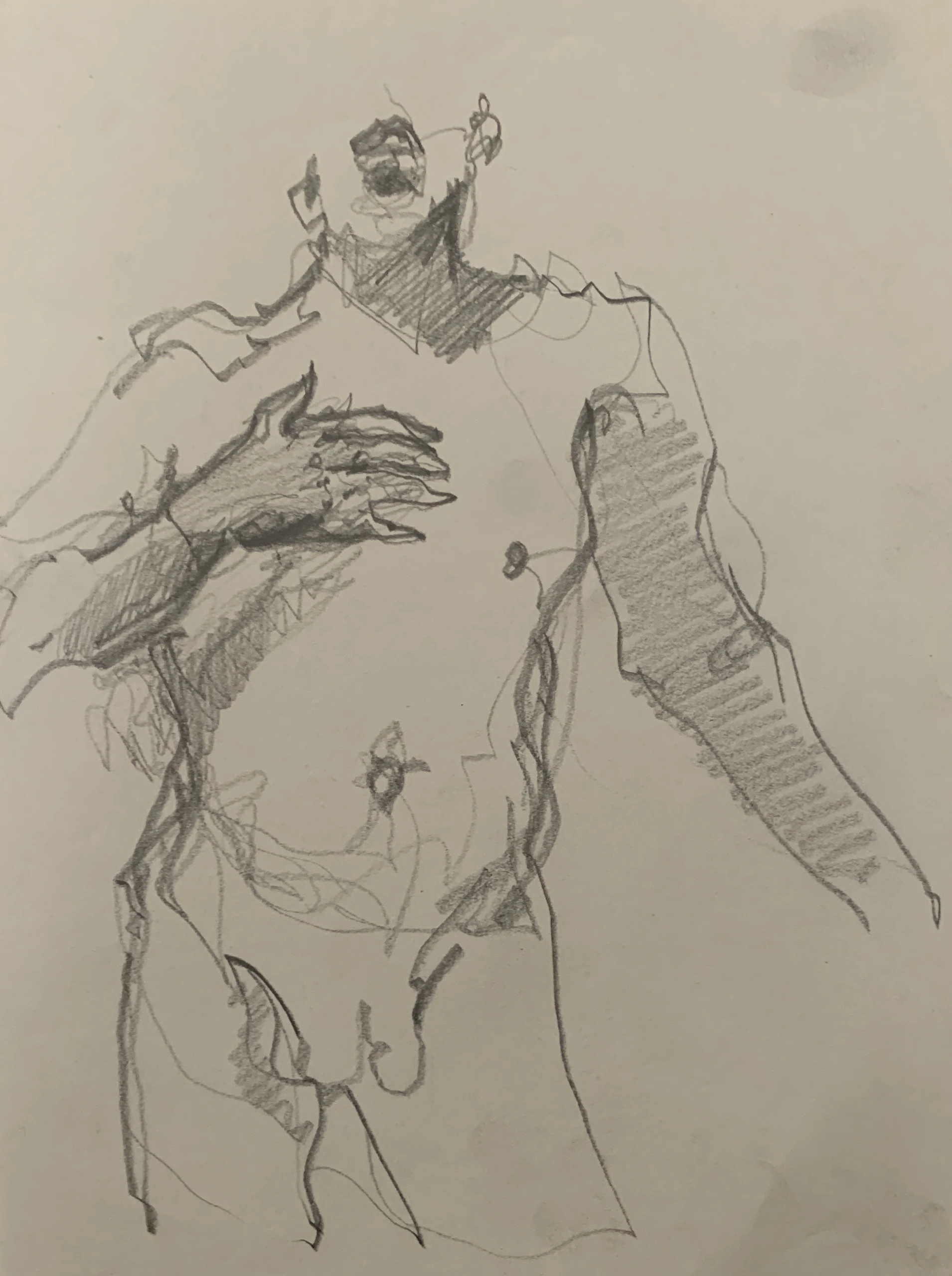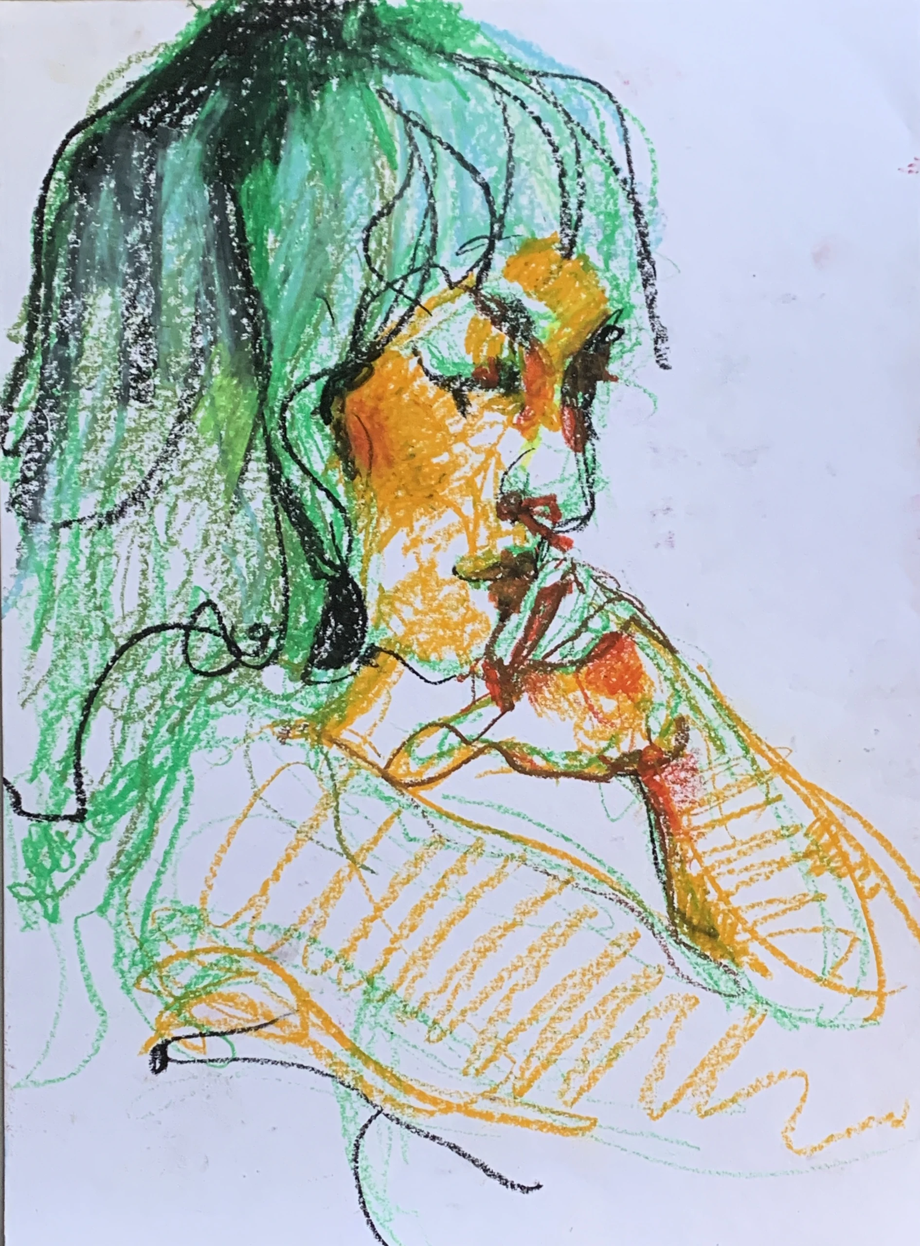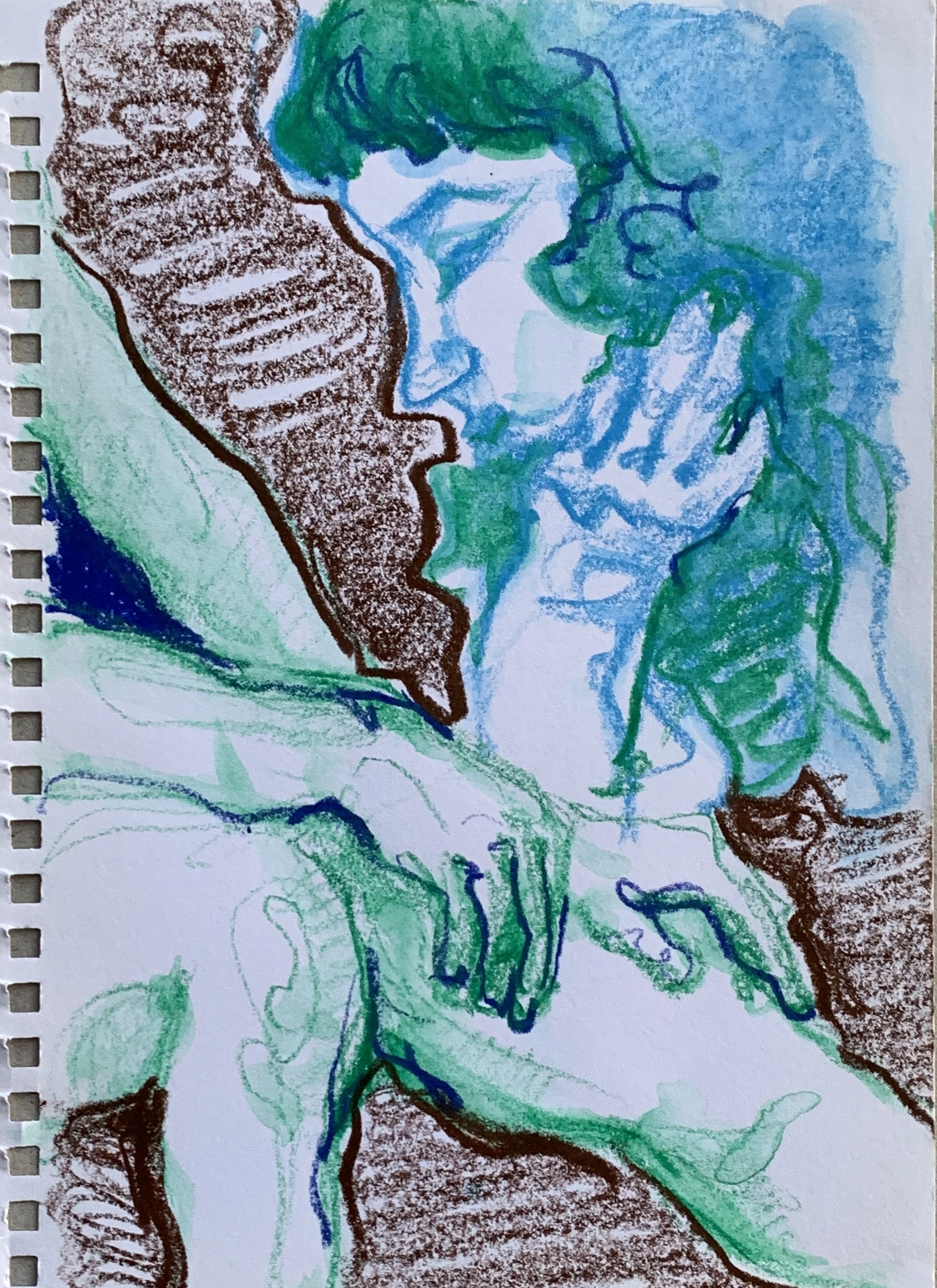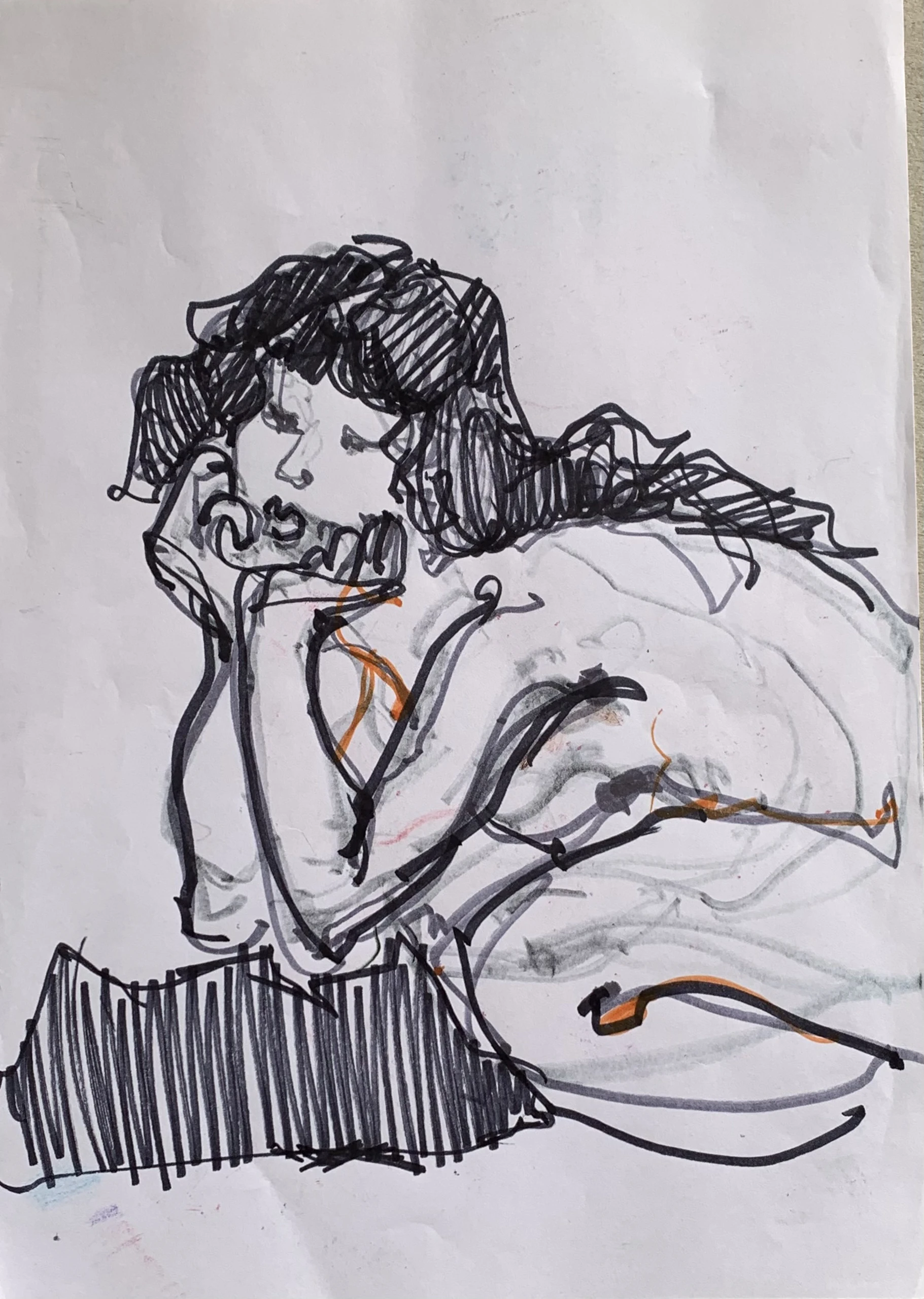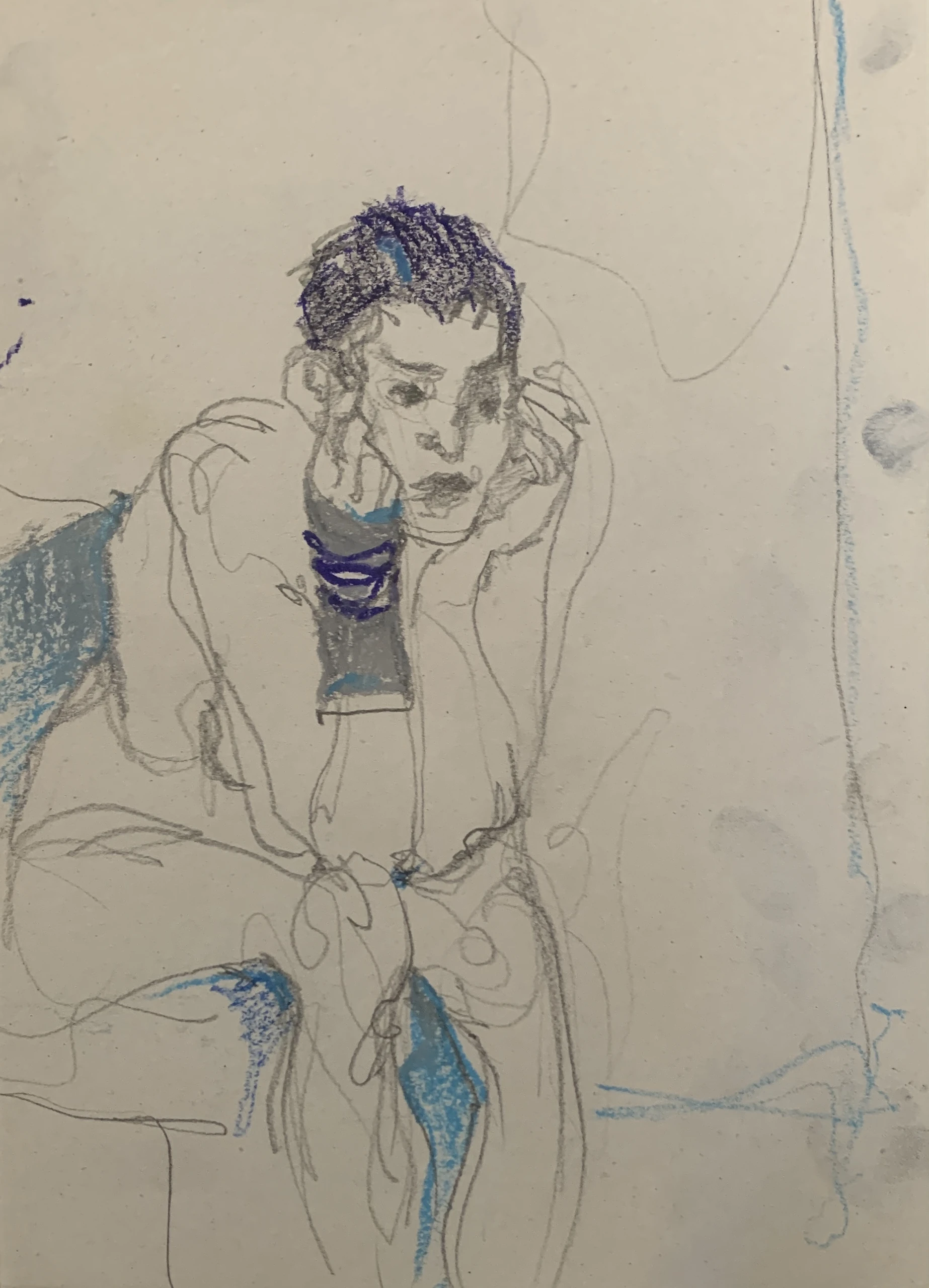 Στο γυμνό σχέδιο, ξεφεύγω πότε πότε και ζωγραφίζω το πρόσωπο και την έκφραση του μοντέλου που μας ποζάρει, πάντα μέσα στον σύντομο χρόνο που έχουμε στην διάθεσή μας.