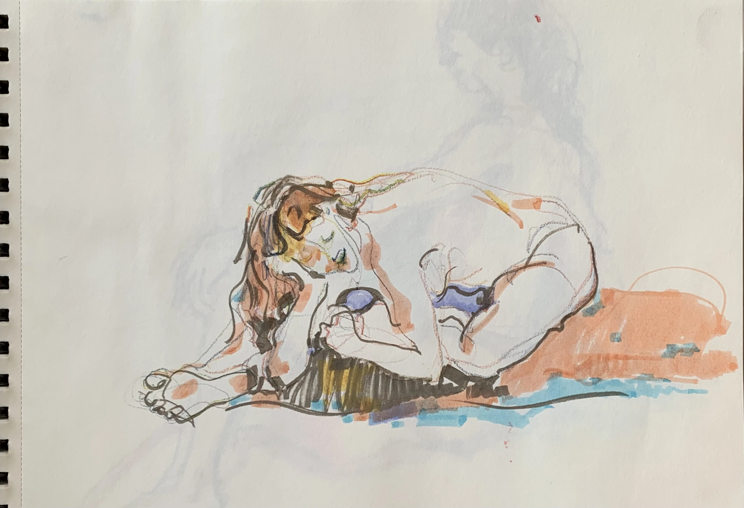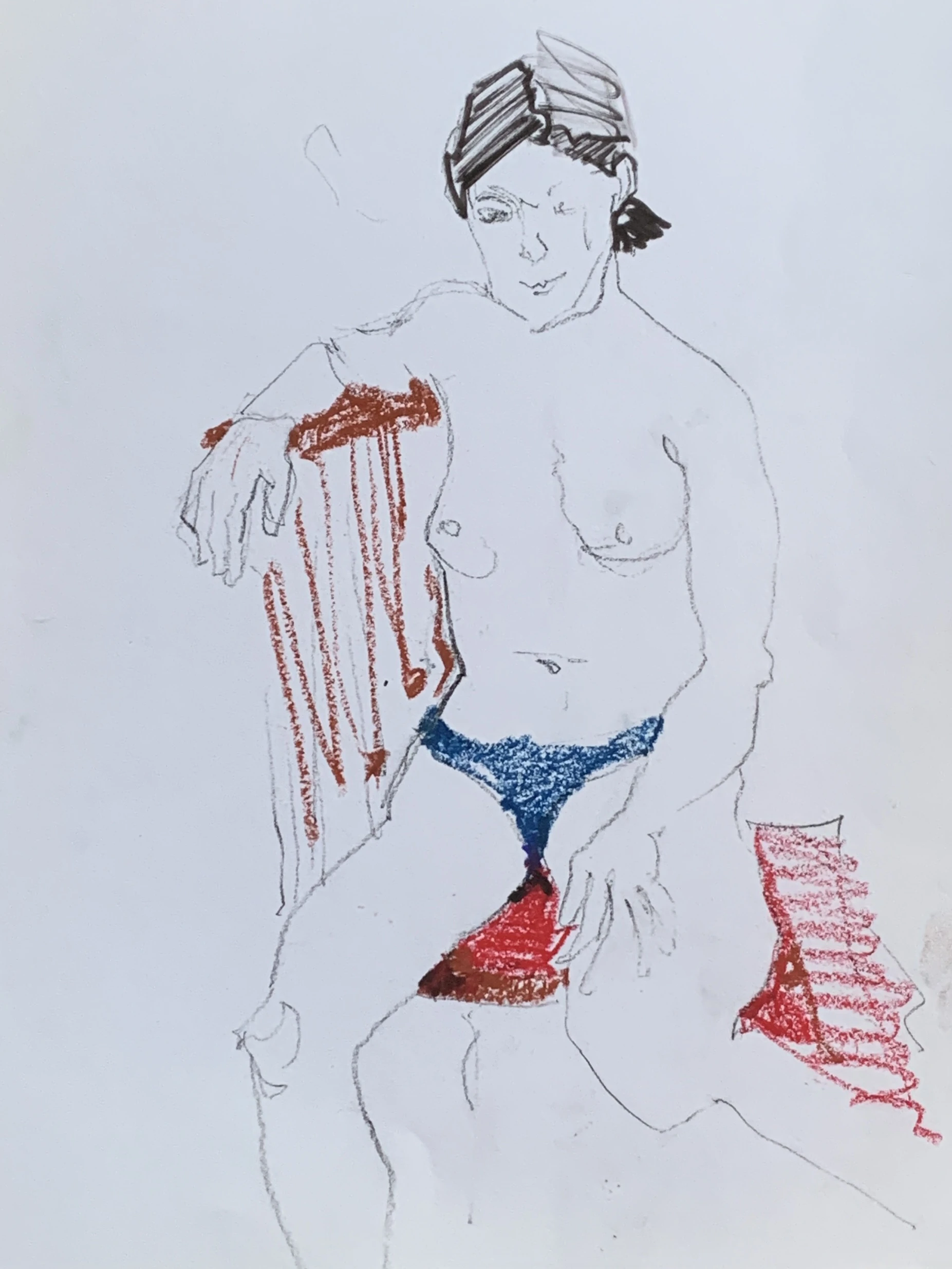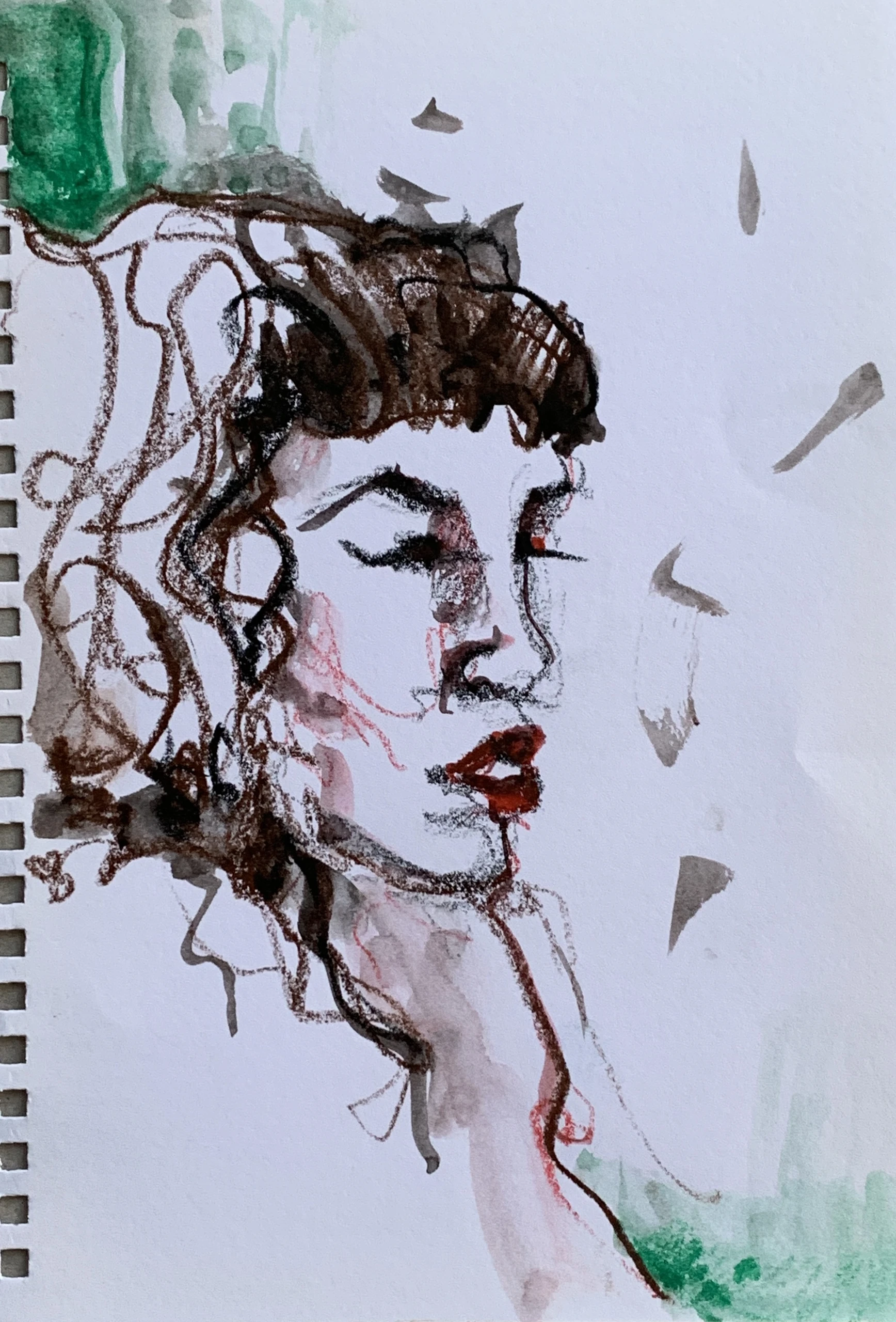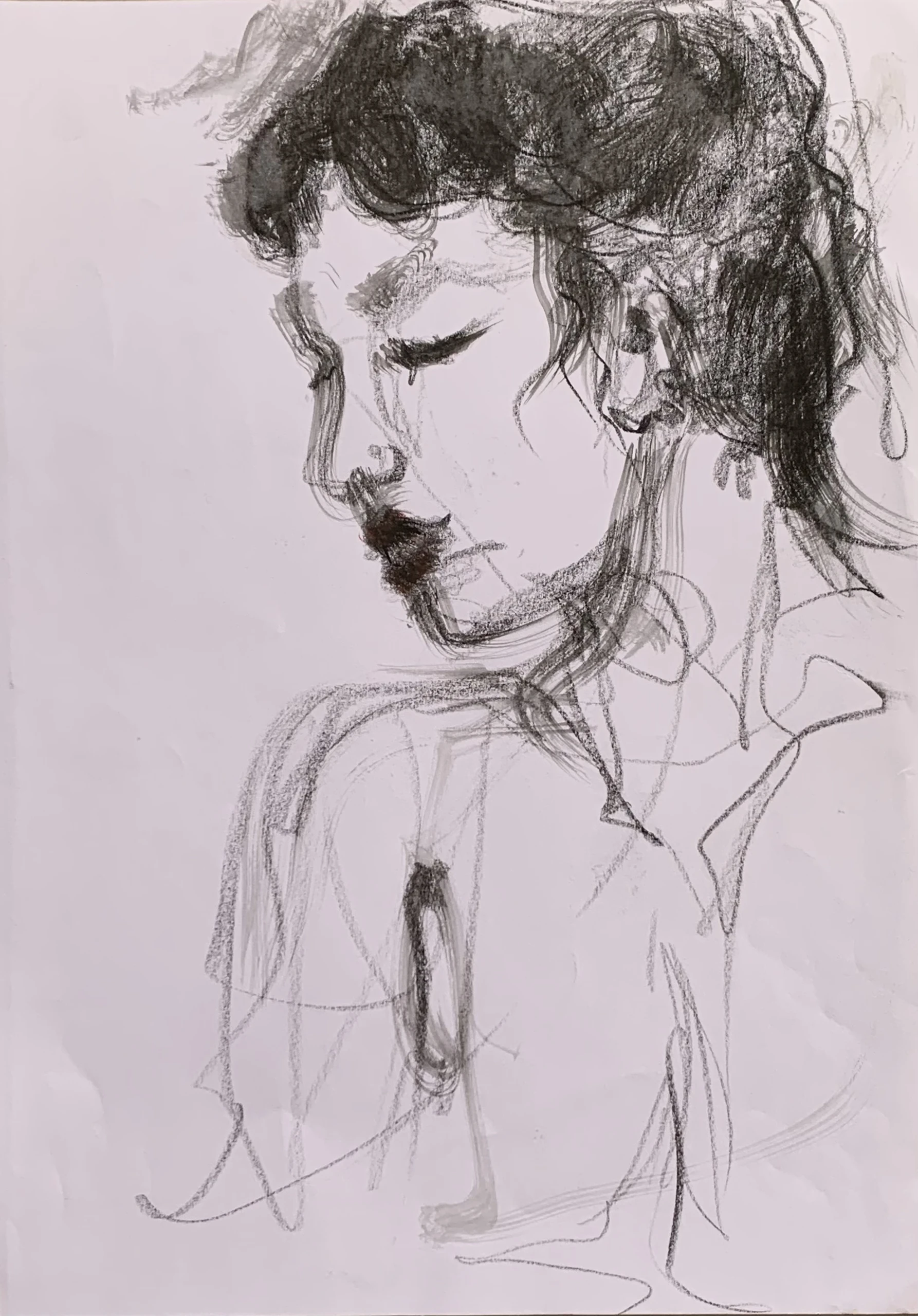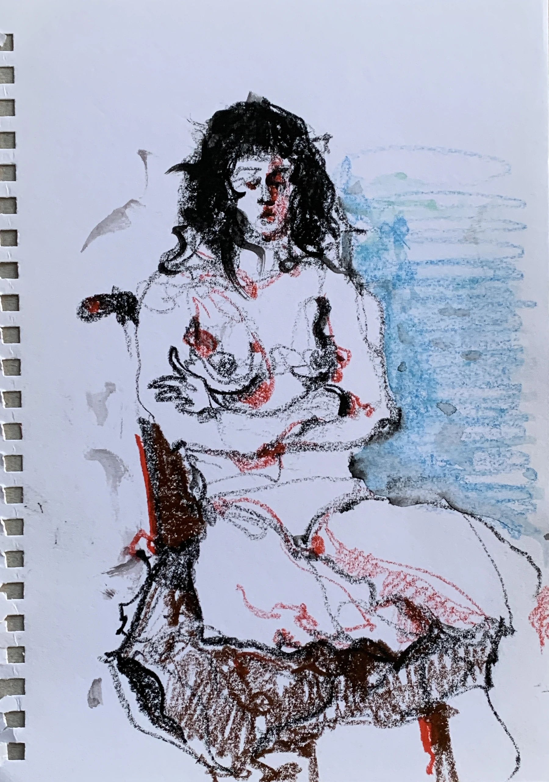 Στο γυμνό σχέδιο, ξεφεύγω πότε πότε και ζωγραφίζω το πρόσωπο και την έκφραση του μοντέλου που μας ποζάρει, πάντα μέσα στον σύντομο χρόνο που έχουμε στην διάθεσή μας.